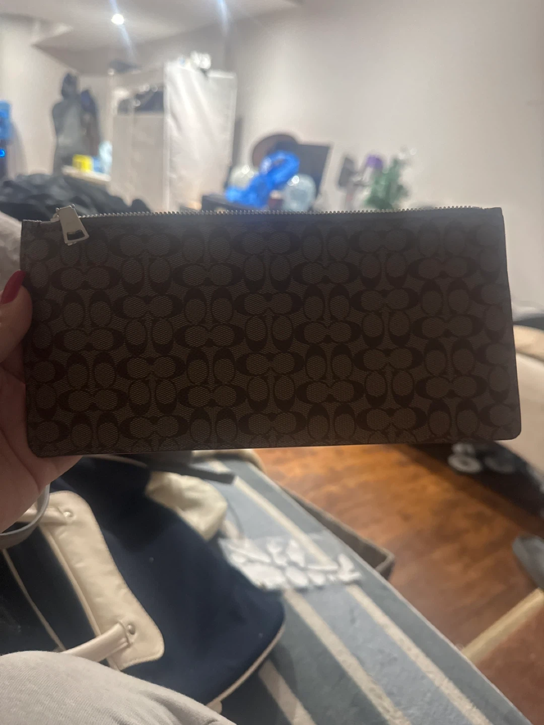 15Selling a Coach wristlet wallet in good condition. It features the classic Coach logo pattern. Great for carrying your essentials!