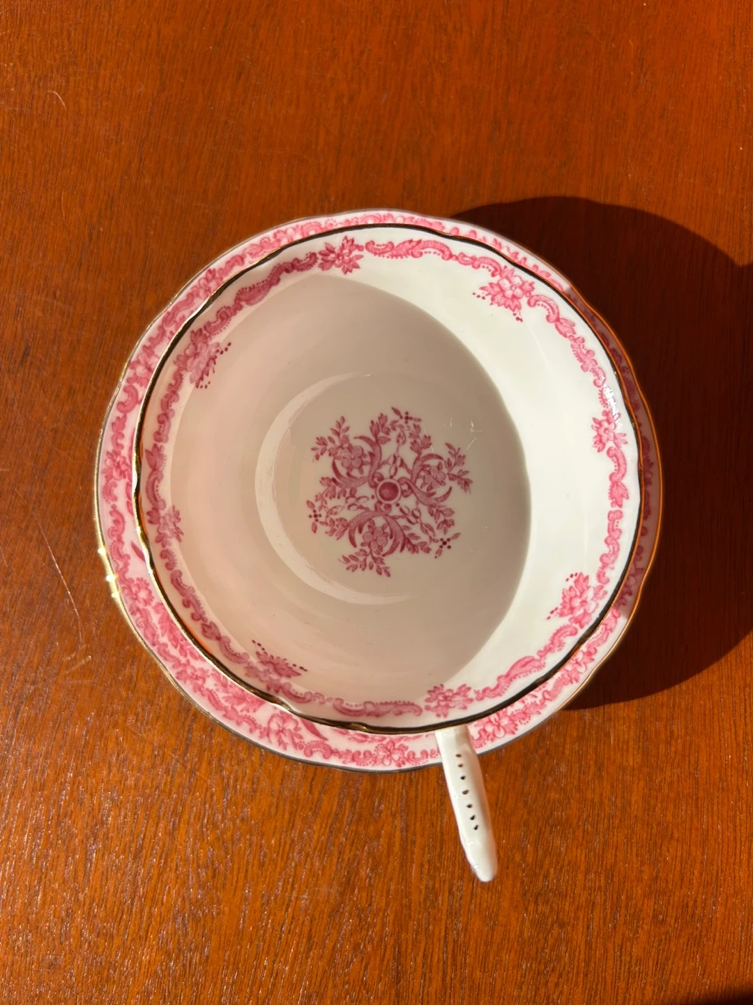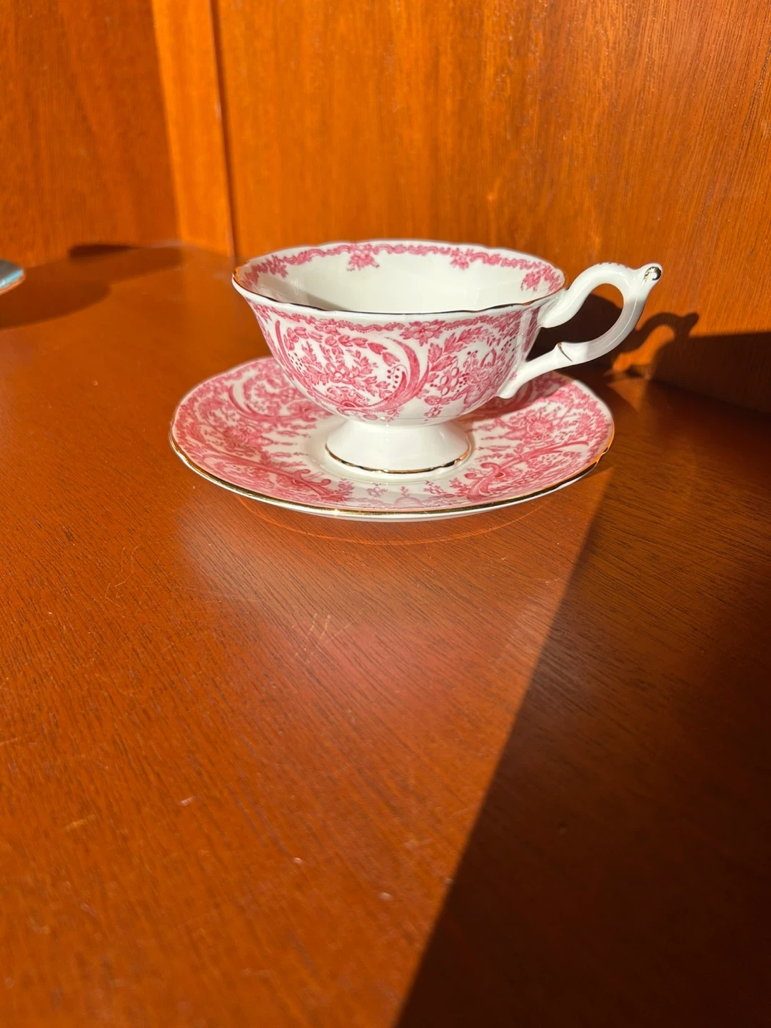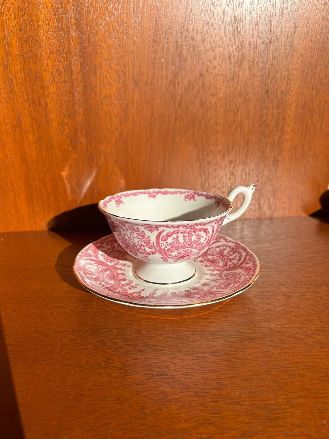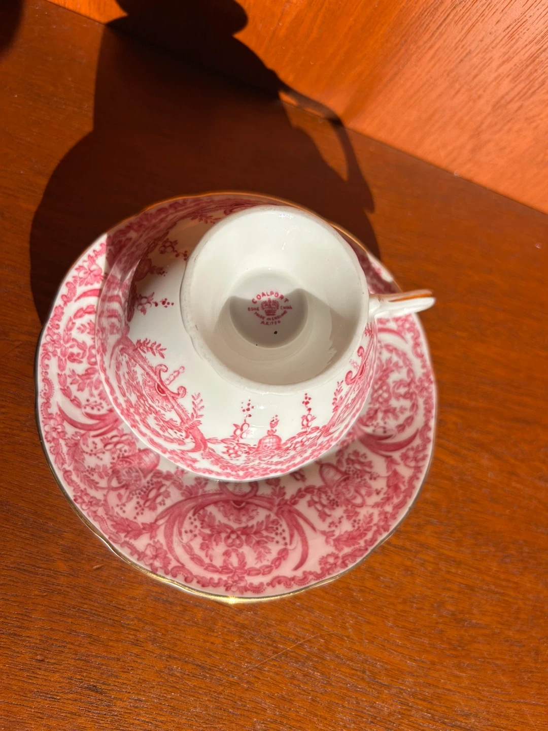 Selling a beautiful Coalport teacup and saucer set! It features a delicate pink pattern. Perfect for tea time or as a decorative piece