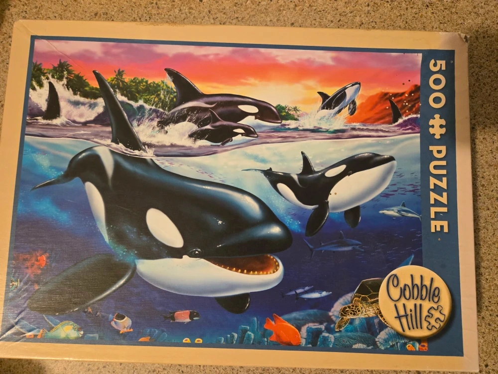 56Cobble Hill 500-piece puzzle featuring a beautiful orca scene! Perfect for puzzle enthusiasts and ocean lovers alike