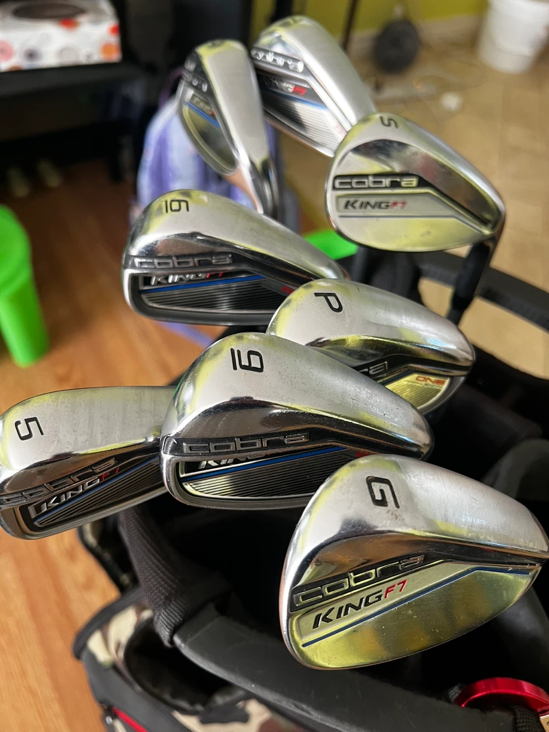 25Selling a set of Cobra King F7 irons. They are in good condition and ready for the course! They feature Lamkin grips and a Pro 81 Flex-S shaft. 5,6,7,9,P,G,S