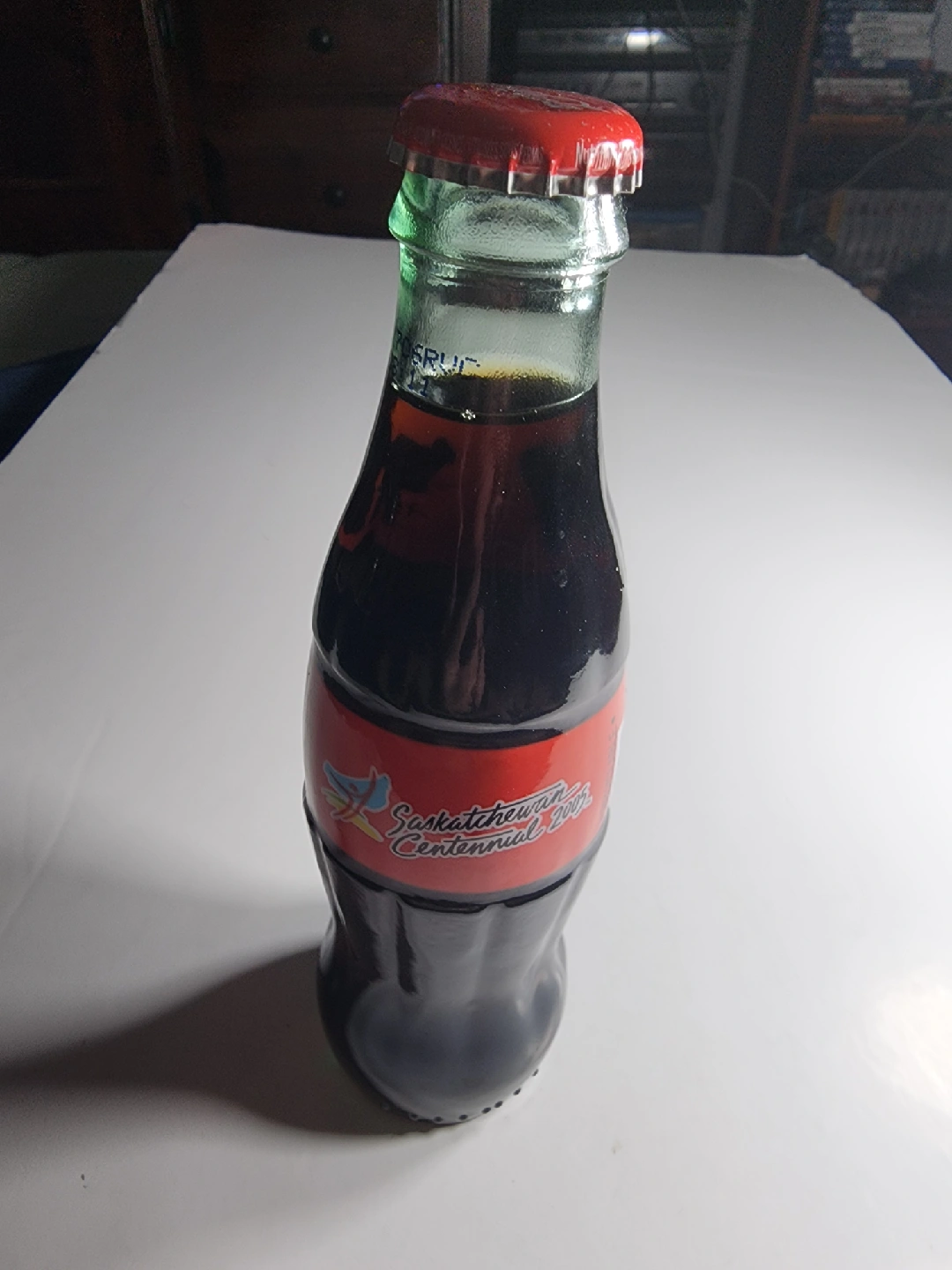 129Selling a Coca-Cola Classic bottle commemorating Saskatchewan's Centennial in 2005! It's a neat piece of memorabilia in a glass bottle. The bottle has a red cap and a label celebrating the centennial year