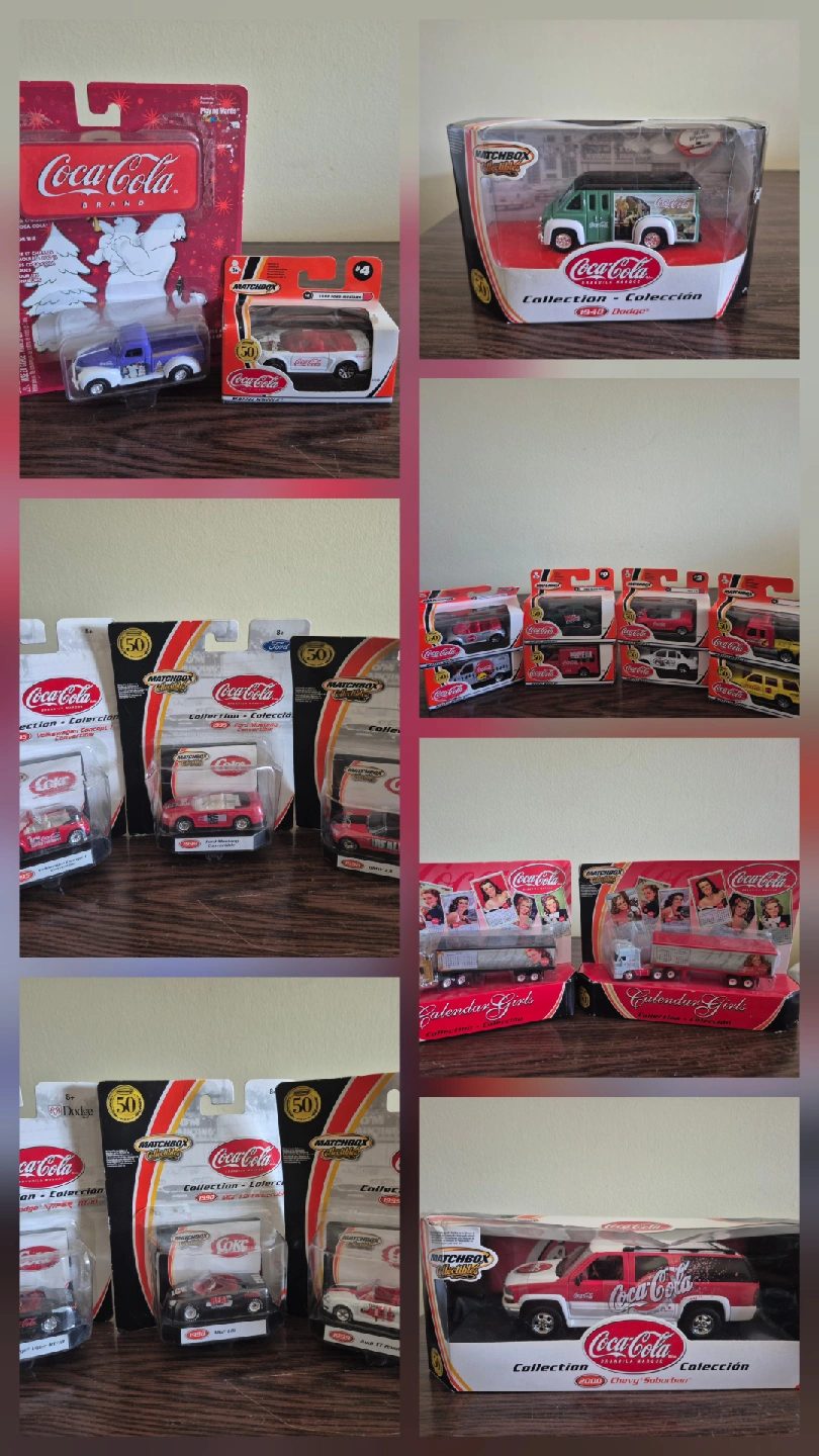Selling a variety of Coca-Cola collectibles. Items include figurines, decorative items, and Matchbox cars. Perfect for any Coca-Cola enthusiast!