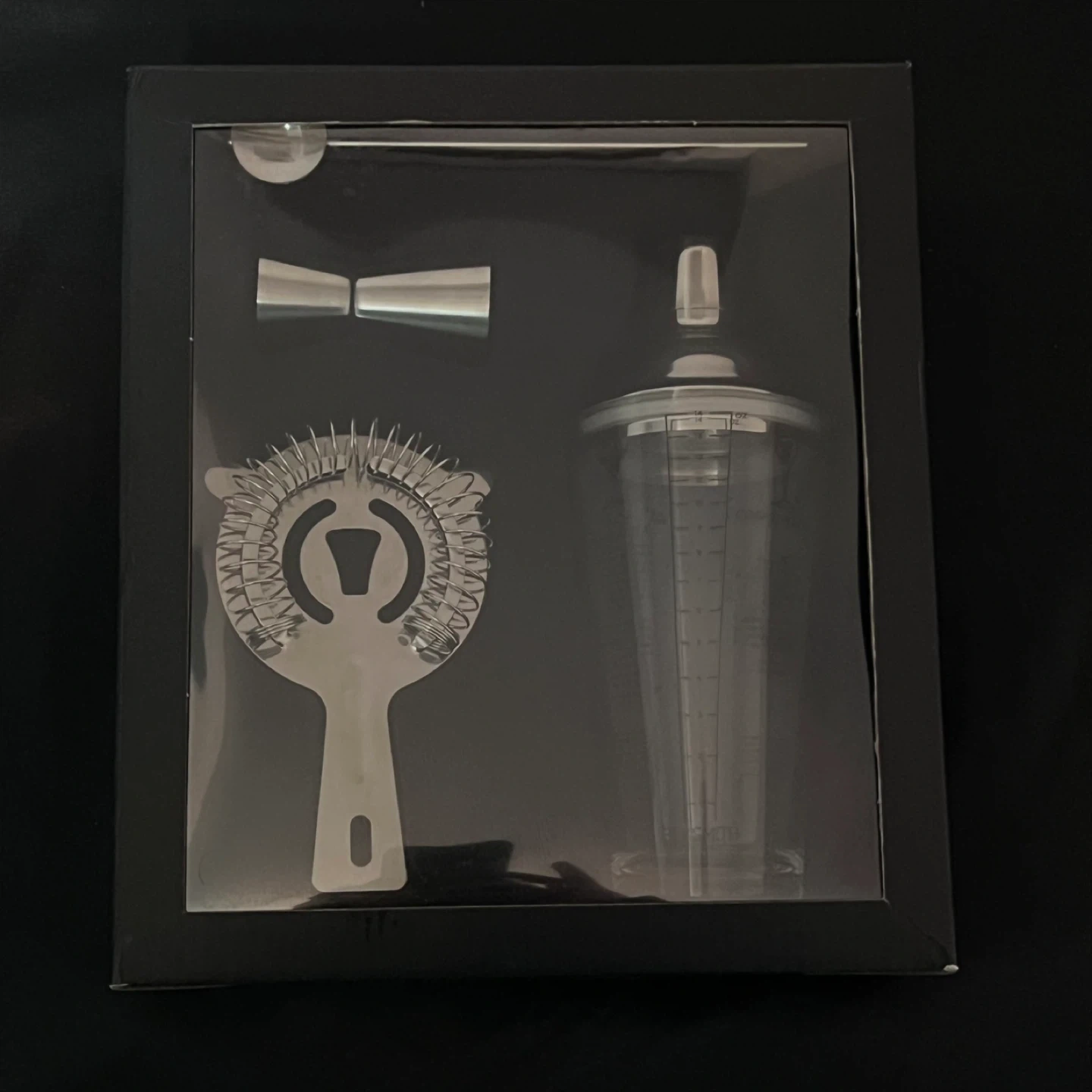 Selling an unused cocktail shaker set. It comes with the shaker itself, a strainer, a jigger, and a bar spoon. All the essential tools to make your favourite cocktails at home are included. The box is included as well, making it a great gift option. The shaker is made of glass with a strainer in the lid as well. *NO TRADE; NO SHIPPING; ONLY CASH will be accepted*