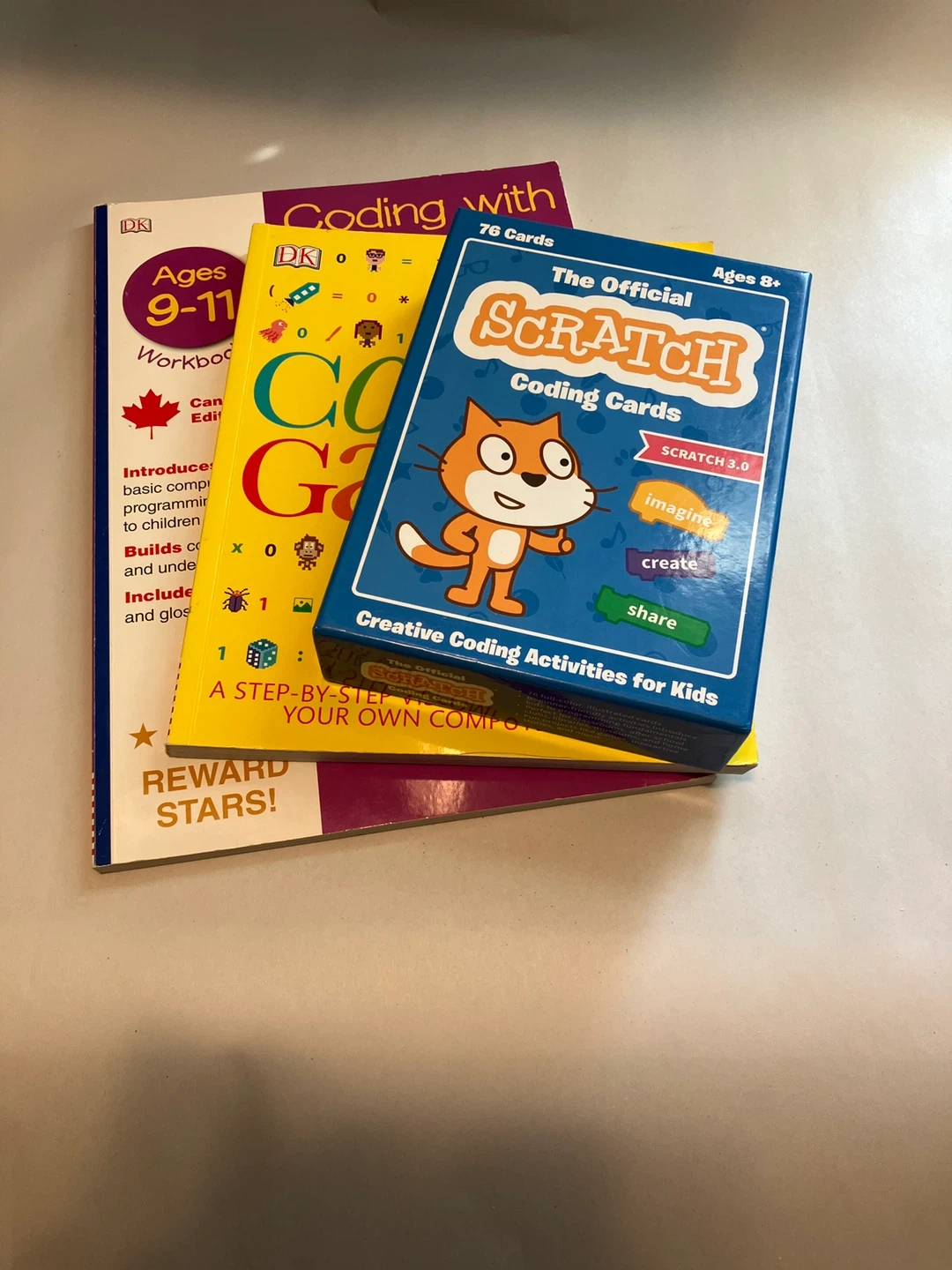 Get your kids coding with this bundle! Included are: - "Coding with Scratch Made Easy" workbook for ages 9-11 - "Coding Games in Scratch" book - The Official Scratch Coding Cards for ages 8+