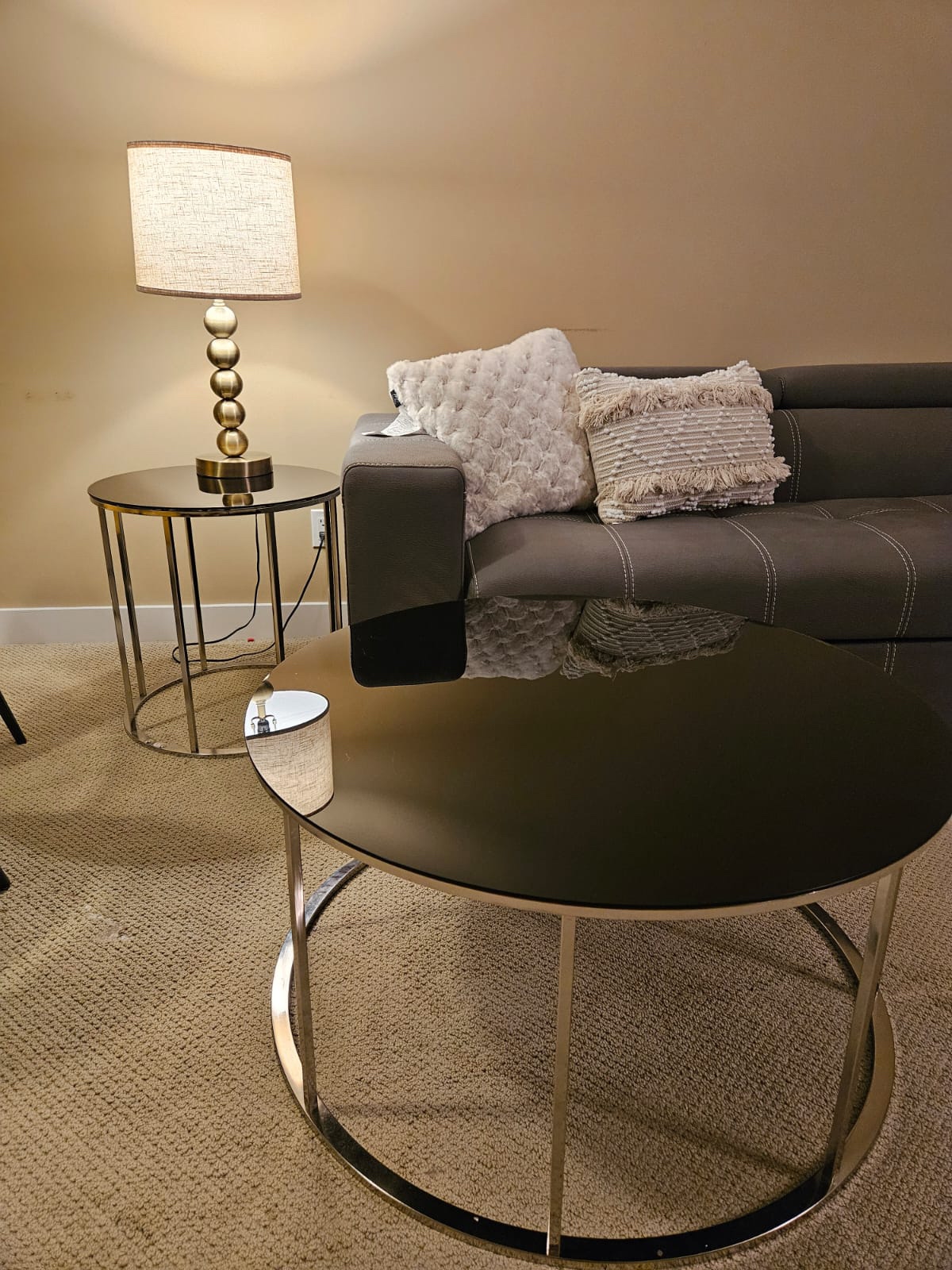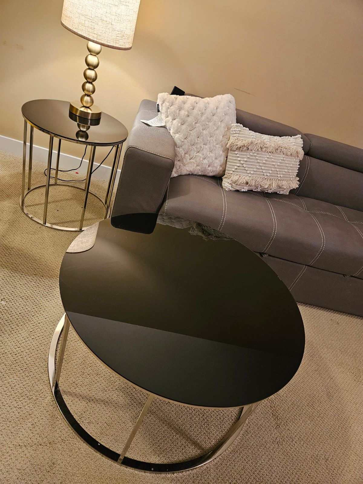 32Modern Design: Sleek and contemporary, these tables add a touch of elegance to any room. Condition: Excellent/Like New Reason for Selling: [Provide reason if relevant] Dimension: Diameter 35 inch, Height 18 inch