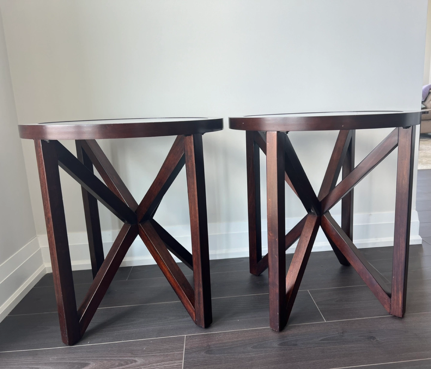 1 coffee table and 2 matching side tables for sale Can purchase separately - Coffee table: $150 Side tables (x2): $100 In excellent condition - original price is $619.00 + tax