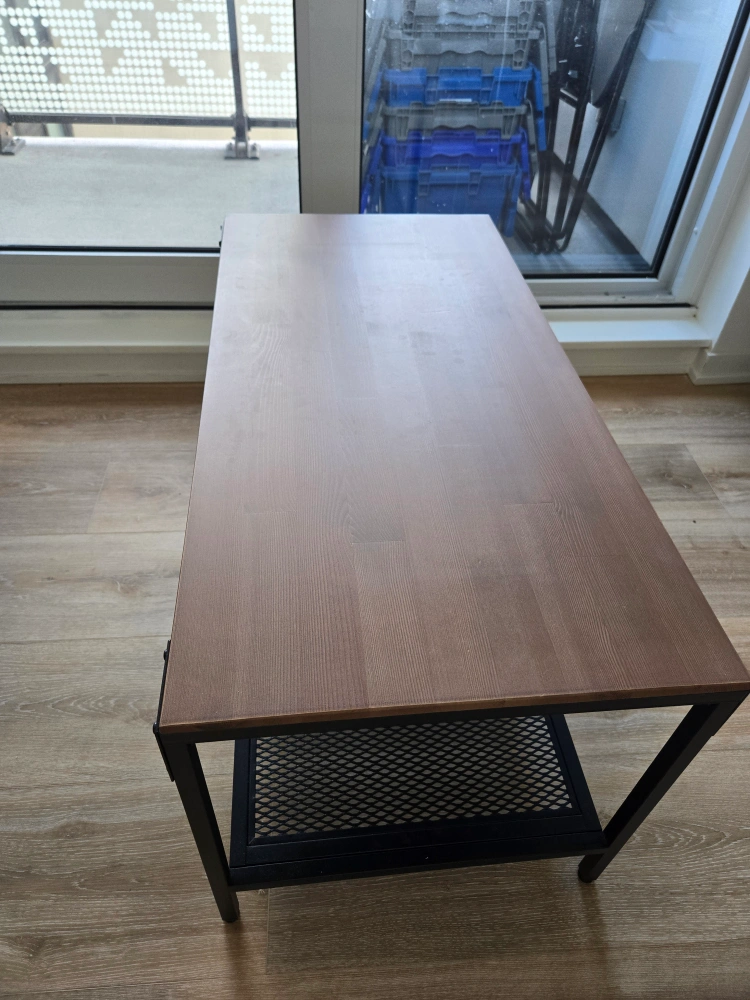 61This rustic metal and solid wood coffee table has a shelf for magazines so you always have them close at hand. Wood is a natural living material, and variations in the grain, color and texture makes each piece of wood furniture unique.