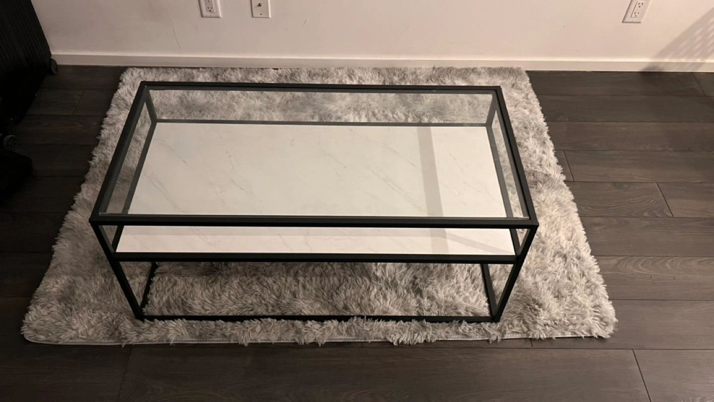 Includes a reversible lower shelf Supports up to 75 lbs. Made of durable laminate, metal, and glass for long-lasting construction It’s Negotiable so feel free to text me!!