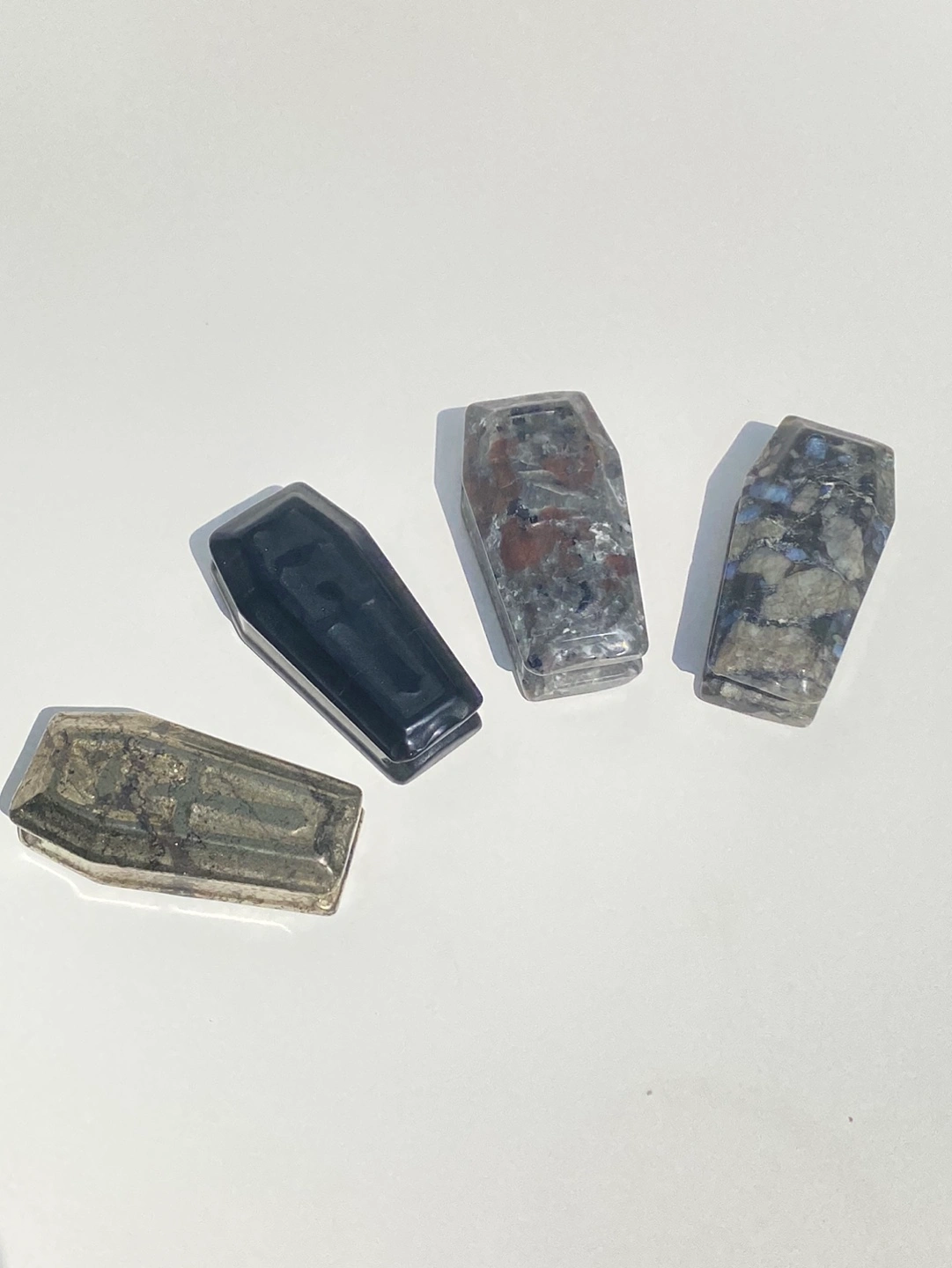 $15 each Super cool spooky carving perfect for halloween or any crystal collection Approximately 2" tall Obsidian Pyrite Yooperlite Que Sera
