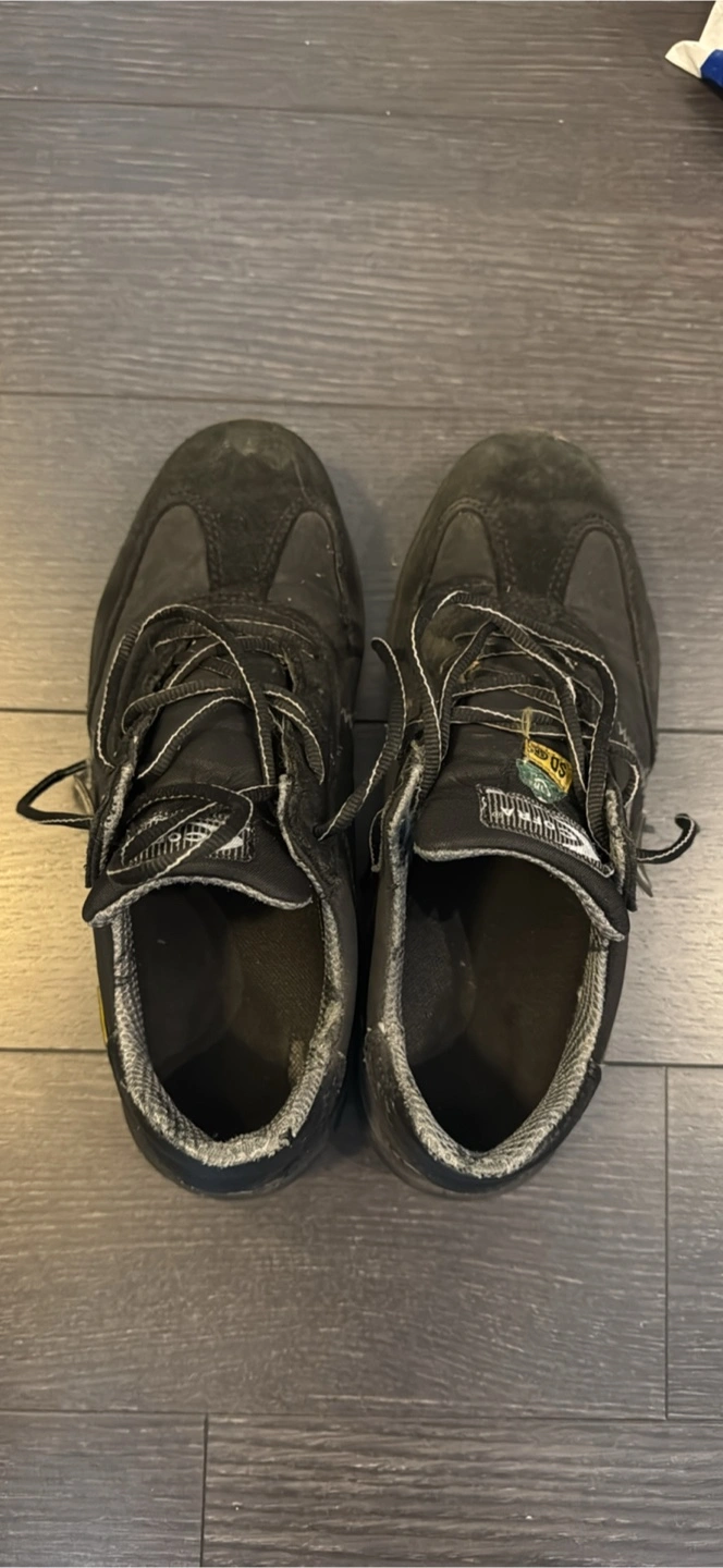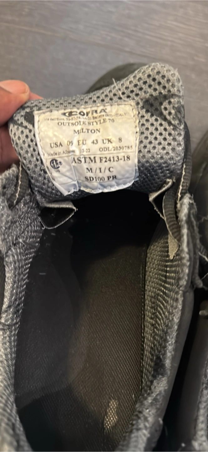 67Selling a pair of Cofra Milton work shoes in black, size 9 US. They show some signs of wear, especially on the soles, but are still functional. These shoes are durable and ready for tough jobs!