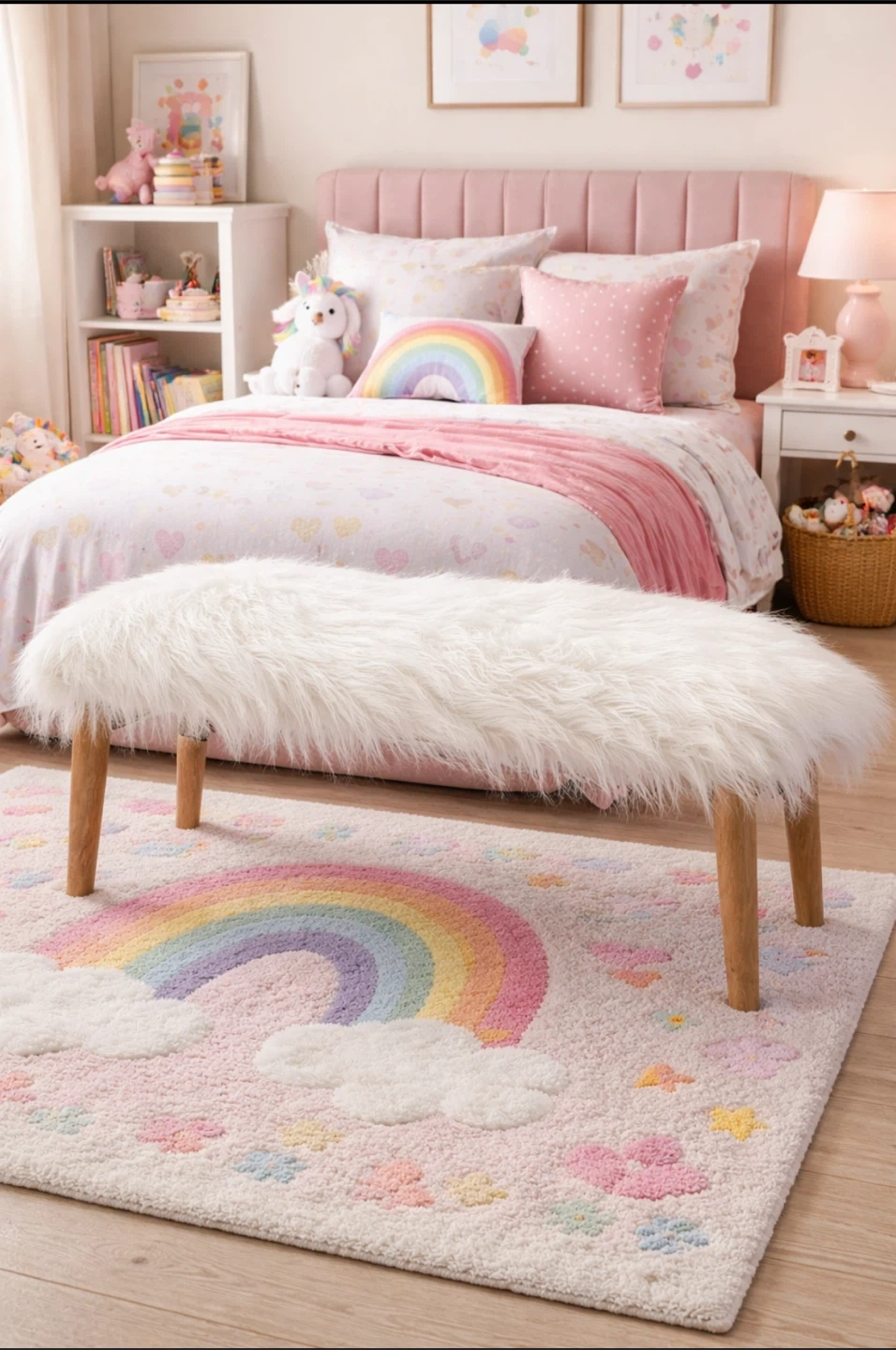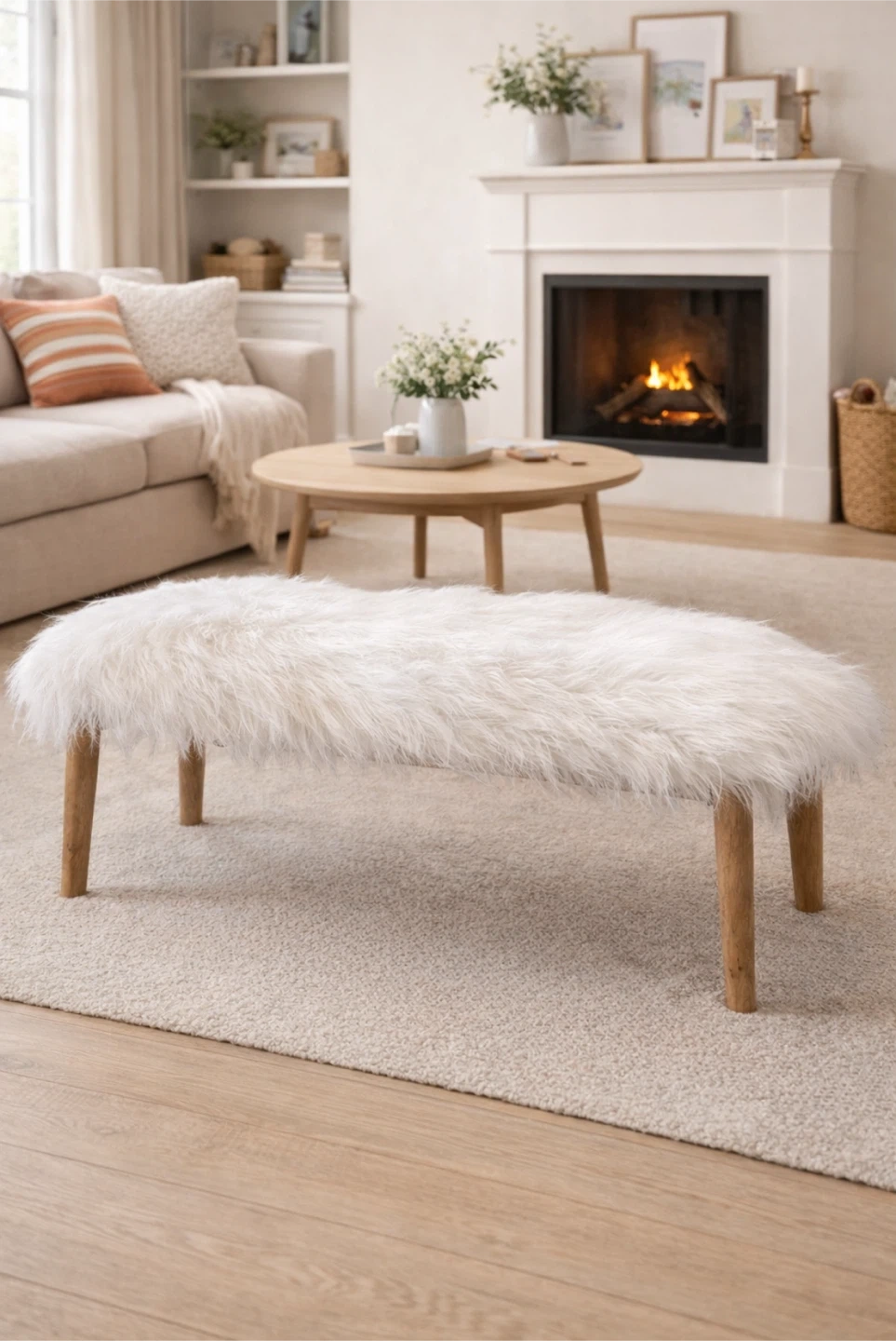 Selling a cute faux fur bench with wooden legs. It's in great condition and would be a lovely addition to any room! Perfect for extra seating or as a decorative piece.