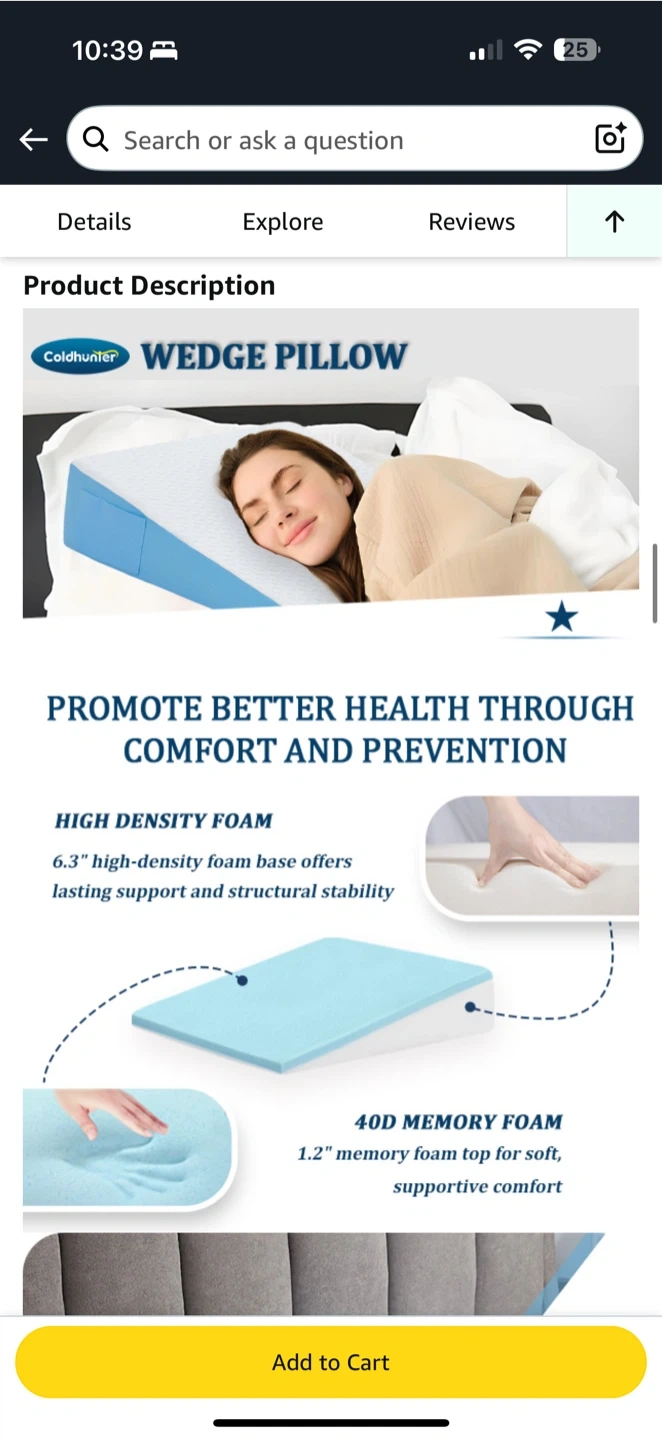 Coldhunter Wedge Pillow – White/Blue (24×24×7.5”) Condition: Brand new, open box Ergonomic wedge pillow designed to improve sleep posture and provide gentle elevation for back, neck, and legs. Perfect for relieving acid reflux, snoring, or post-surgery recovery. 📏 Size: 24 × 24 × 7.5 inches 🎨 Color: White & Blue 🧽 Material: High-density foam base + 40D memory foam top layer 🧺 Removable & washable cover ✨ Features: • Promotes better posture and reduces discomfort • Soft, supportive memory foam surface • Improves sleep quality and breathing • Washable, breathable, hypoallergenic cover • Ideal for bed, couch, or recliner use 💲 Price: $30 🆕 Amazon price: $39.99 📍 Pickup in Waterloo