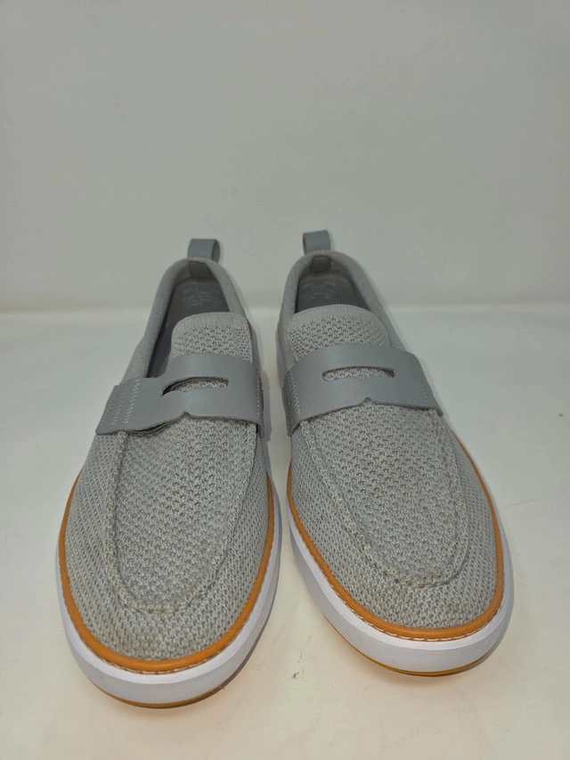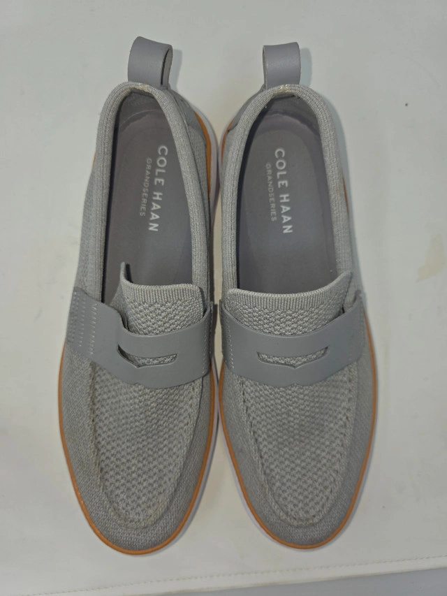 496Pre owned Loafers by Cole Haan Size 10.5 Model number - c36648 Color - Sleet / Optic White Price is firm, no trades. Pick up only (St Clair West Station)