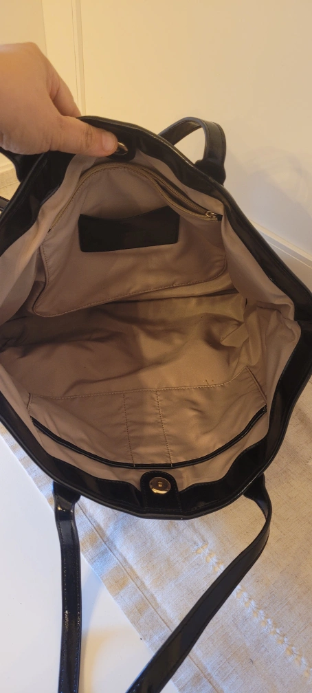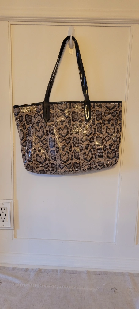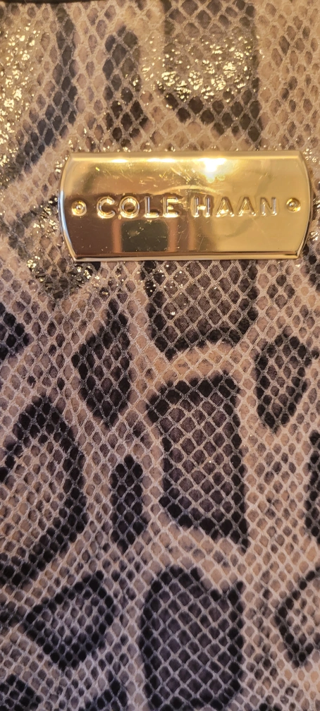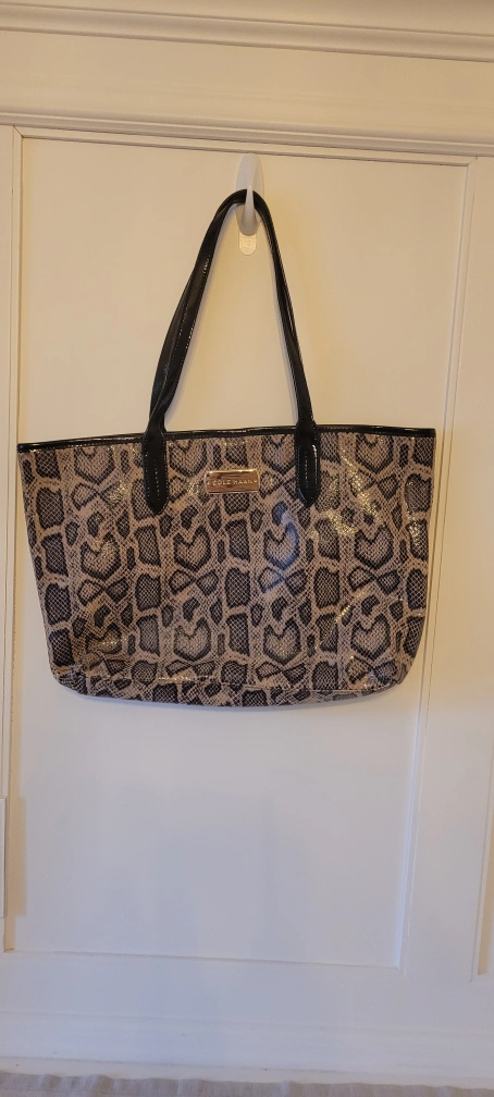 Cole Haan tote bag with a stylish snake print! The bag has black patent leather handles and trim. It's in great condition and ready for a new home