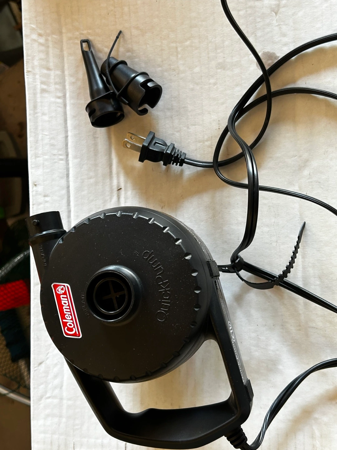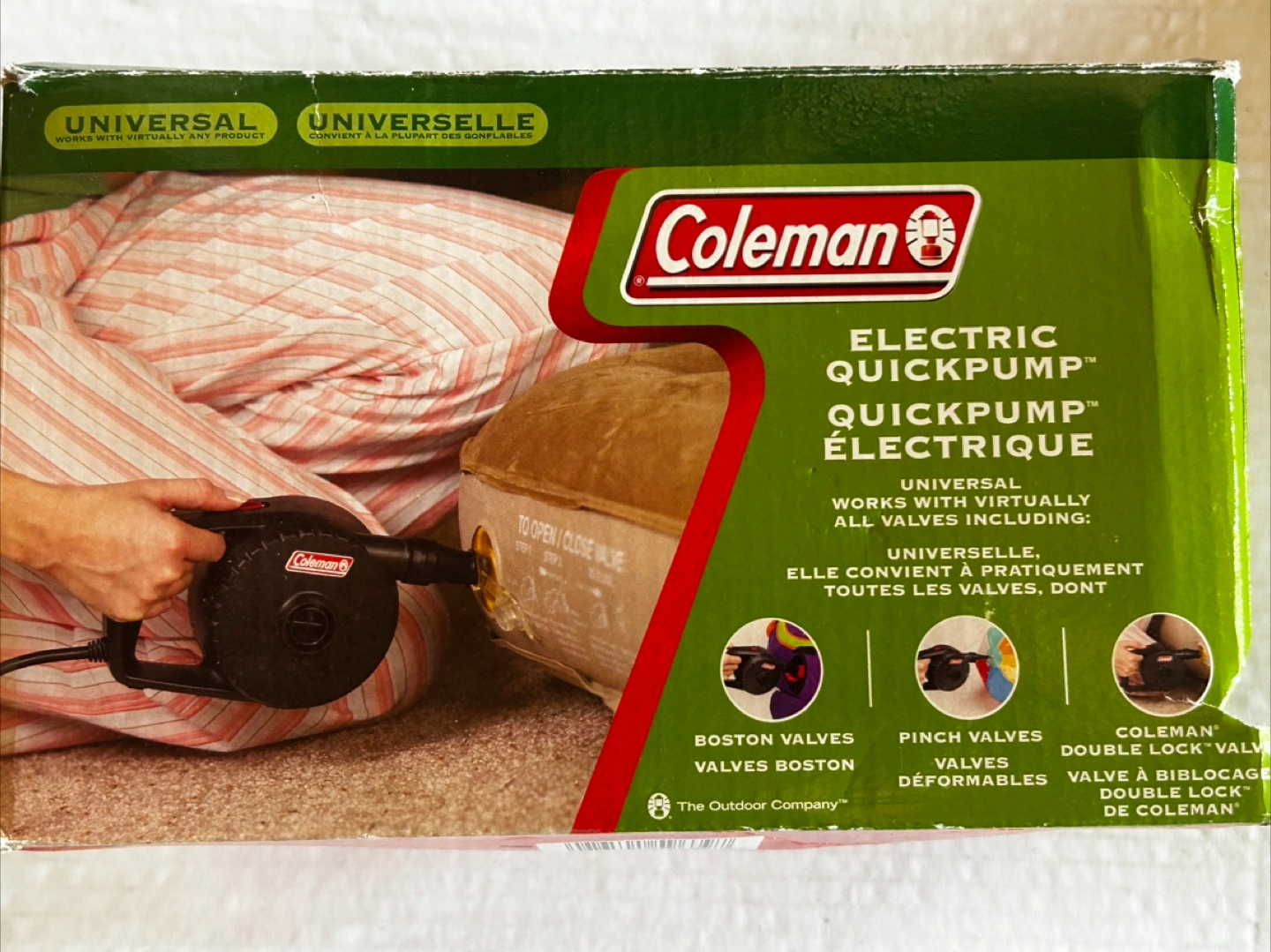 Selling a Coleman Electric QuickPump! It works with virtually all valves, including Boston valves, pinch valves, and Coleman double lock valves. Comes with the pump and attachments