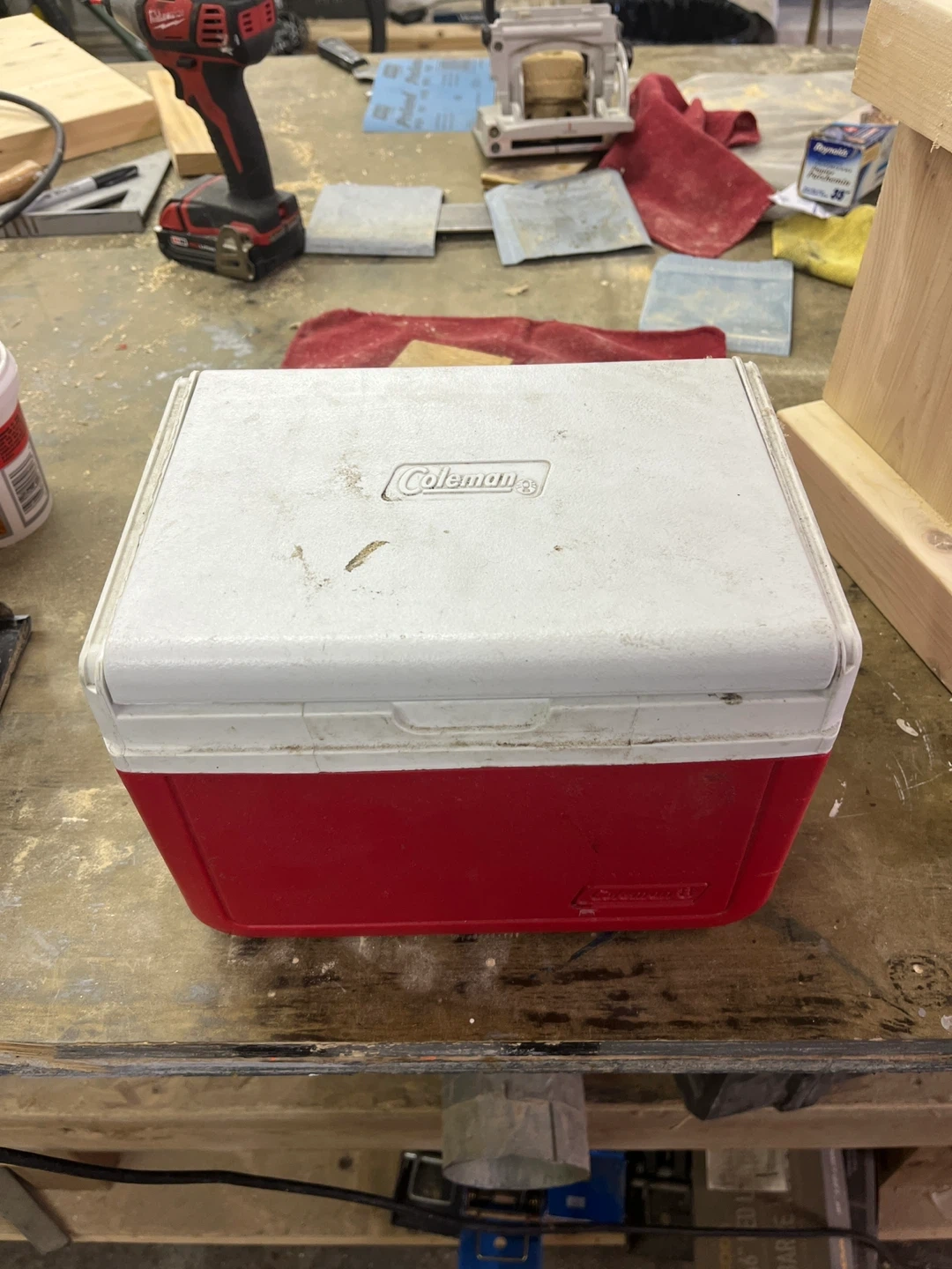 Small Coleman cooler, perfect for keeping your drinks and snacks cold on the go! It's in good condition and ready for your next picnic or camping trip - 10” x 7” x 7”