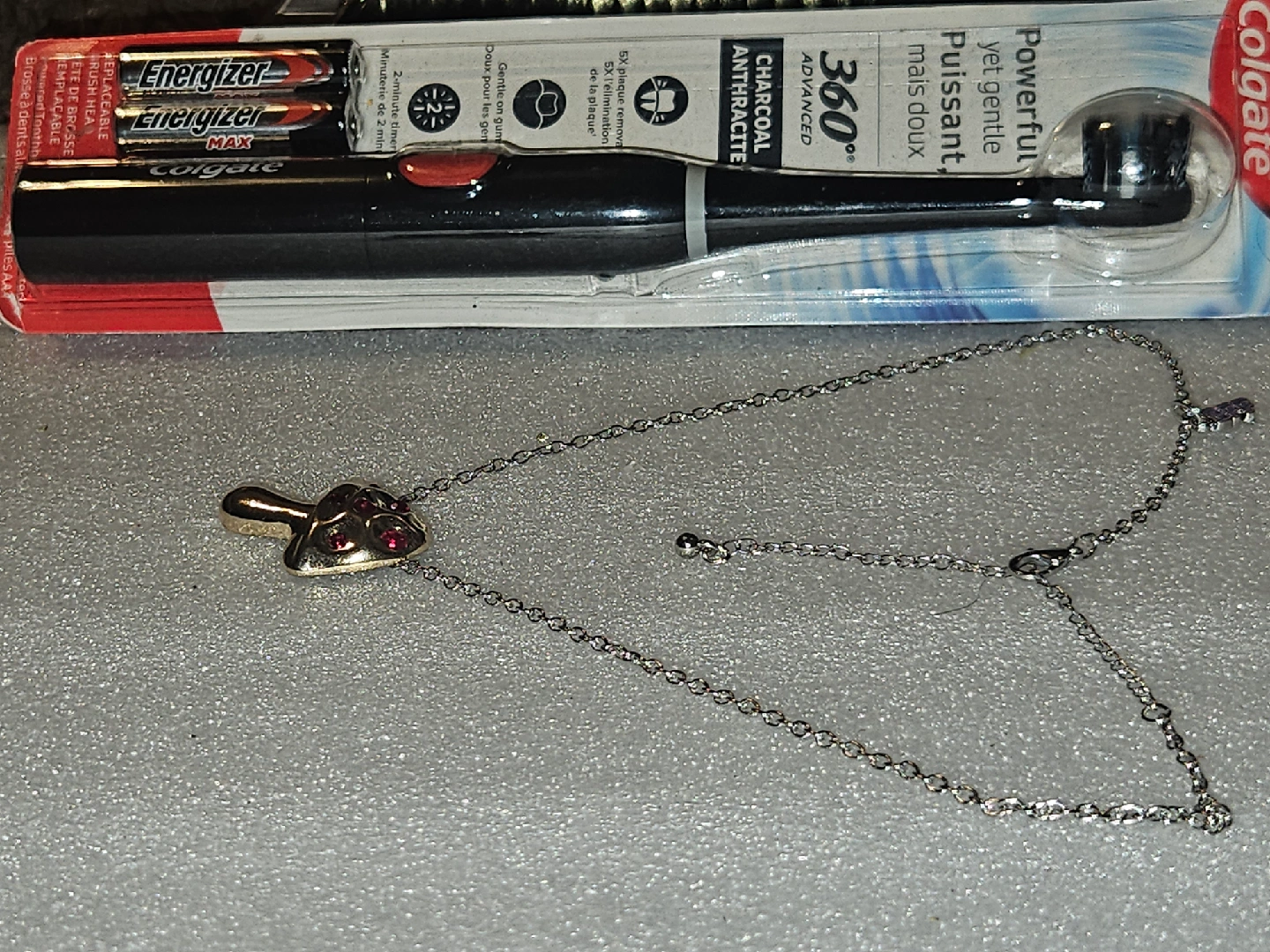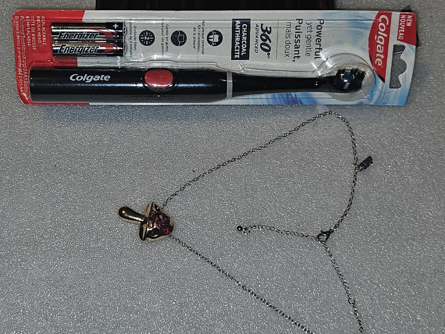 25Selling a brand new Colgate 360° Advanced Charcoal electric toothbrush! It comes with the toothbrush and Energizer batteries included+ Stainless steel Necklace with Pendant as in pictures. get a free gift 🎁 by each purchase. free shipping. 70%off original price. only $26.00