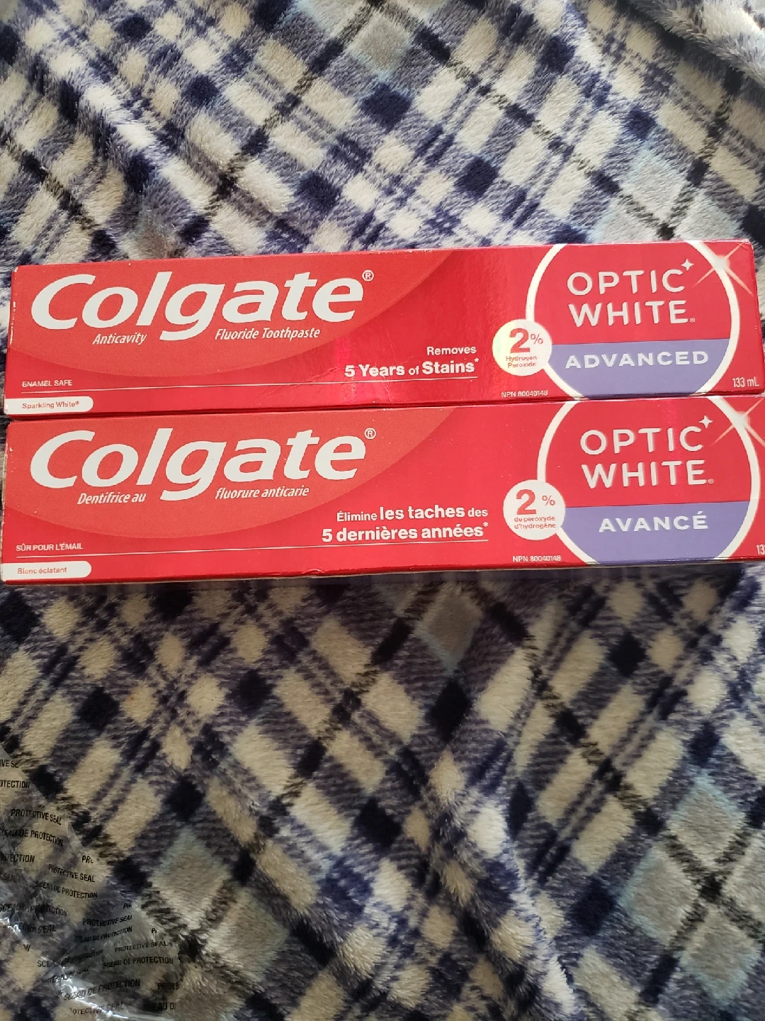Colgate Optic White 133 ml. Removes 5 Years of stains. $4 each