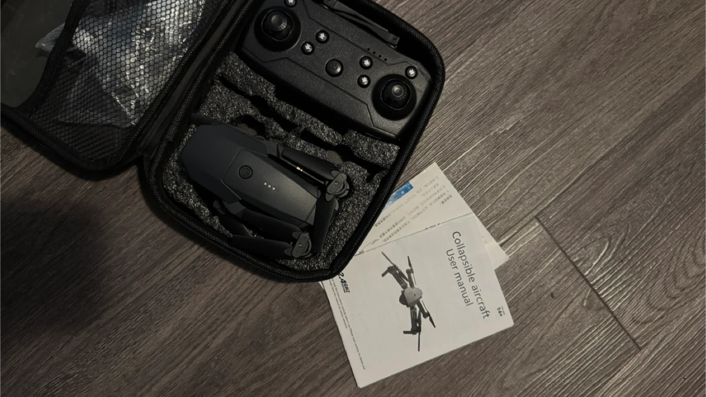 74Selling a collapsible aircraft drone! It comes with the remote, charger, user manual, and extra parts, all in the original case. Perfect for beginners or experienced drone enthusiasts