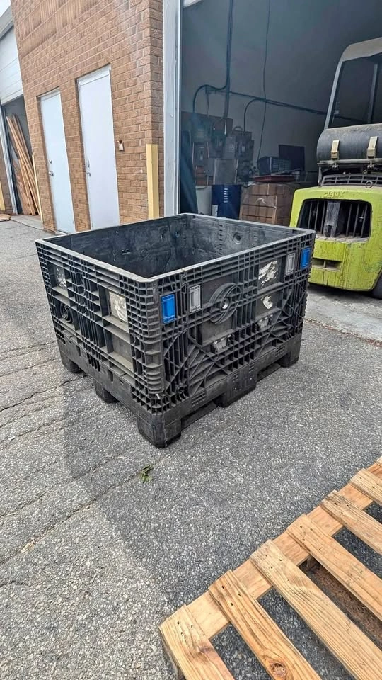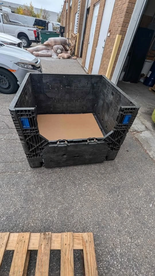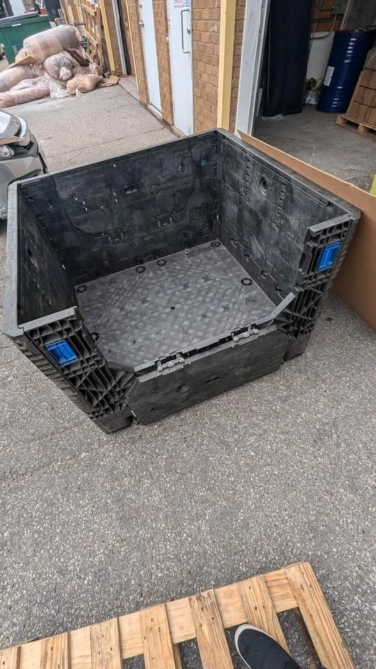 Collapsible bulk container. Outside dimensions: 45"x 48"x 34"H. Inside: 41"x 44"x 28"H. When collapsed 13"high. Walls are 1.5" thick. Pickup only Scarborough, Morningside and Sheppard.