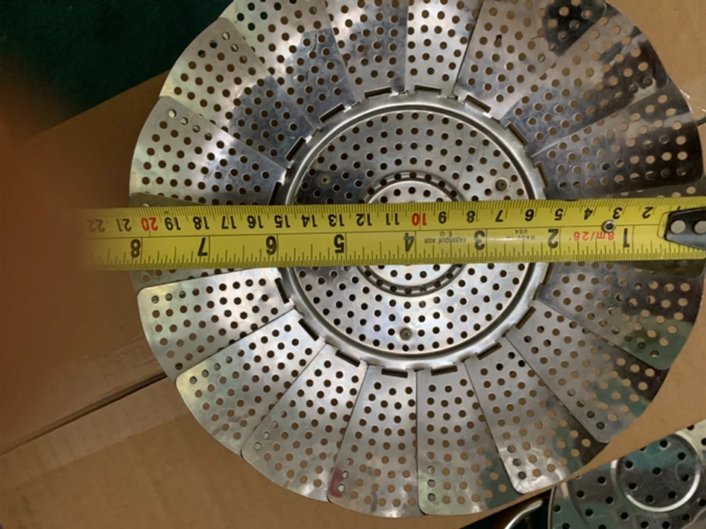 Selling a collapsible steamer basket. The diameter is about 8 inches when fully expanded. Perfect for steaming veggies or dumplings!