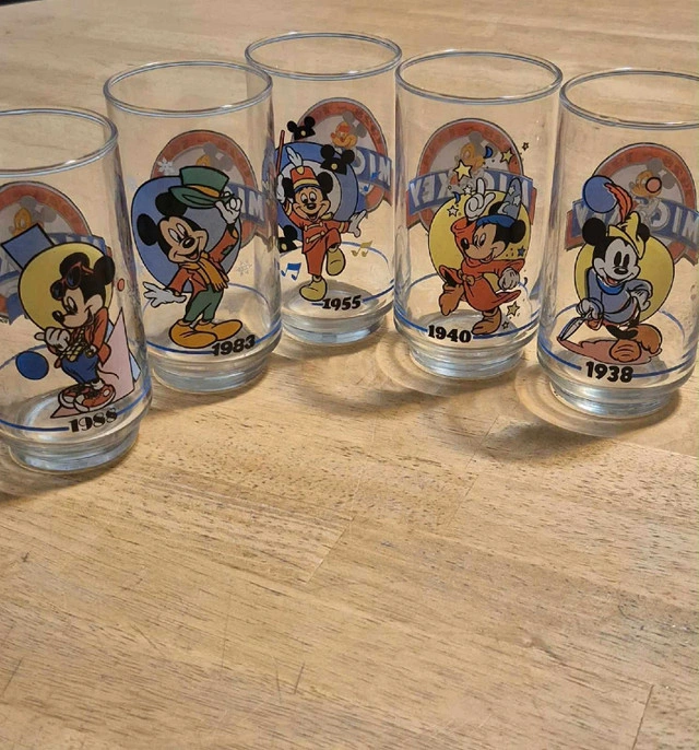 ⚡️⚡️ACCEPTING OFFERS⚡️⚡️ Add a touch of nostalgia to your collection with these collectible Mickey Mouse glasses, each featuring a unique design from various years! These glasses are in used condition, showcasing different eras of Mickey Mouse, from 1938 to 1988. They're perfect for any Disney enthusiast looking to own a piece of history. Here's a breakdown of the designs: * 1938 Mickey Mouse * 1940 Mickey Mouse * 1955 Mickey Mouse * 1983 Mickey Mouse * 1988 Mickey Mouse If the ad is up, they're still available!