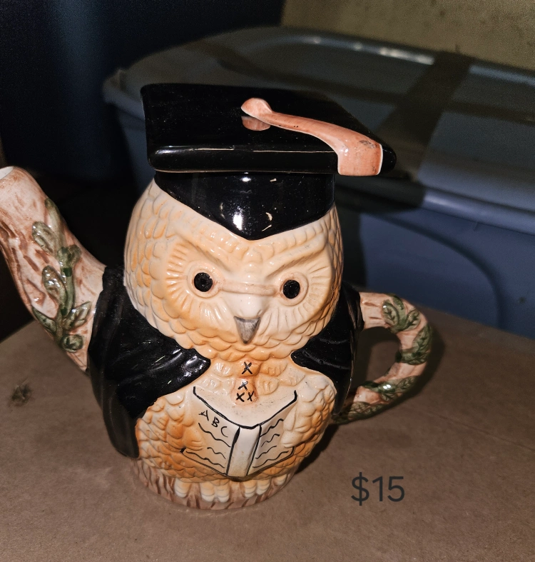60Five unique ceramic teapots. Graduation owl teapot. Cute cat teapot. Vintage telephone teapot. Quirky man teapot. Elegant swan teapot. Prices vary.