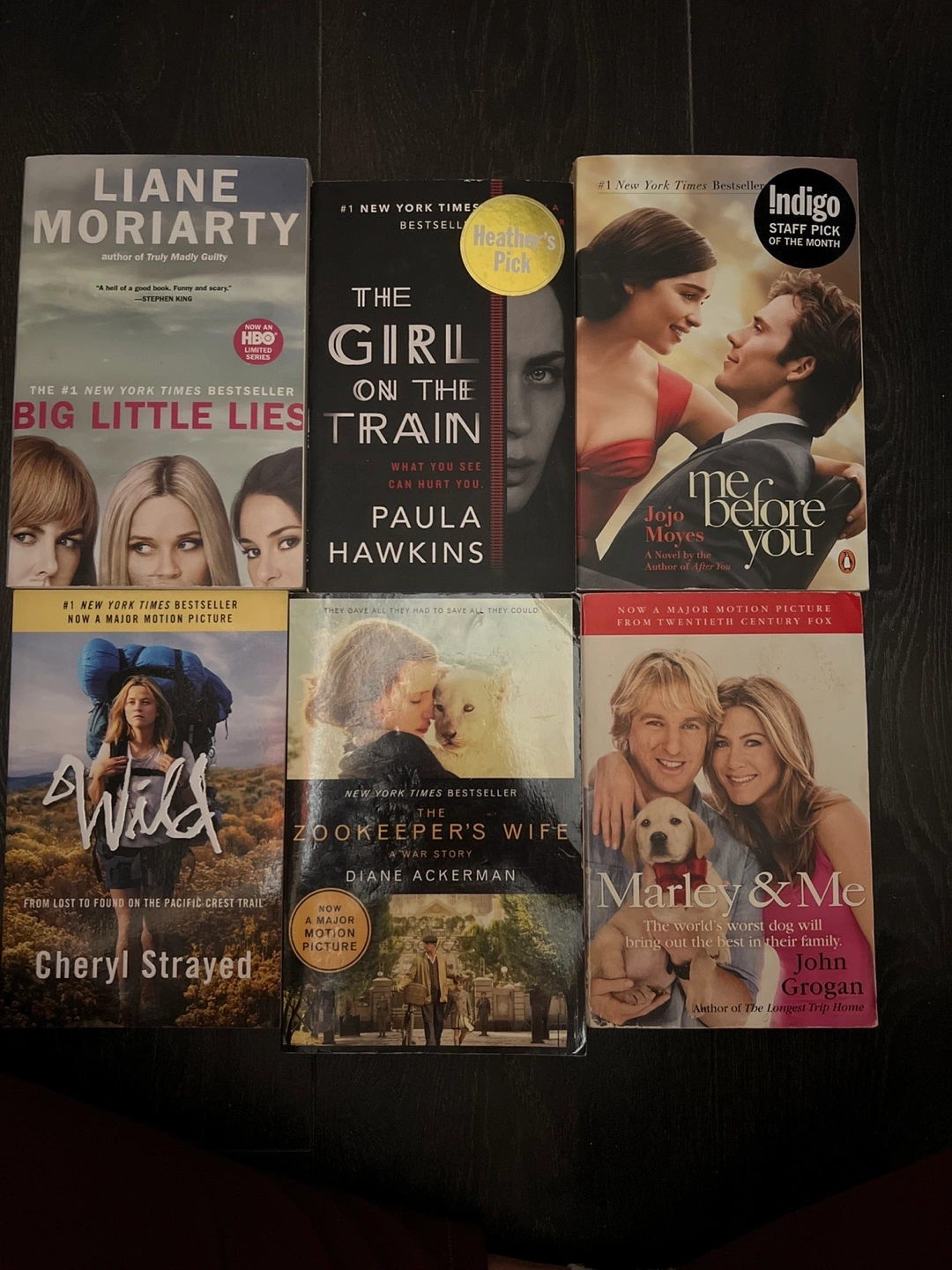 15Six popular novels, including Big Little Lies, The Girl on the Train, Me Before You, Wild, The Zookeeper's Wife and Marley & Me. Great for readers or book collectors. $10 each or 2 for $15 - can be mixed with other book postings of mine :)