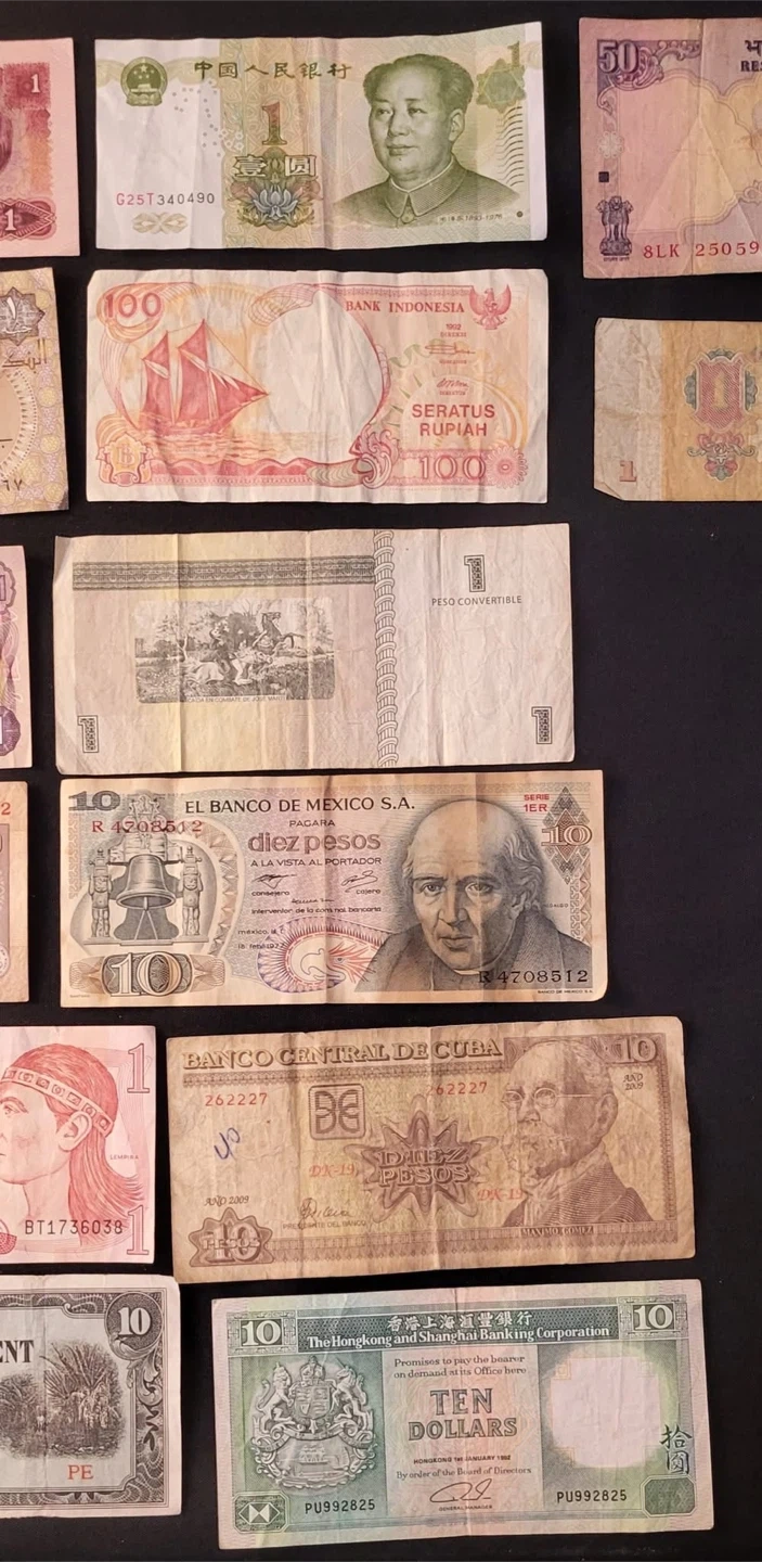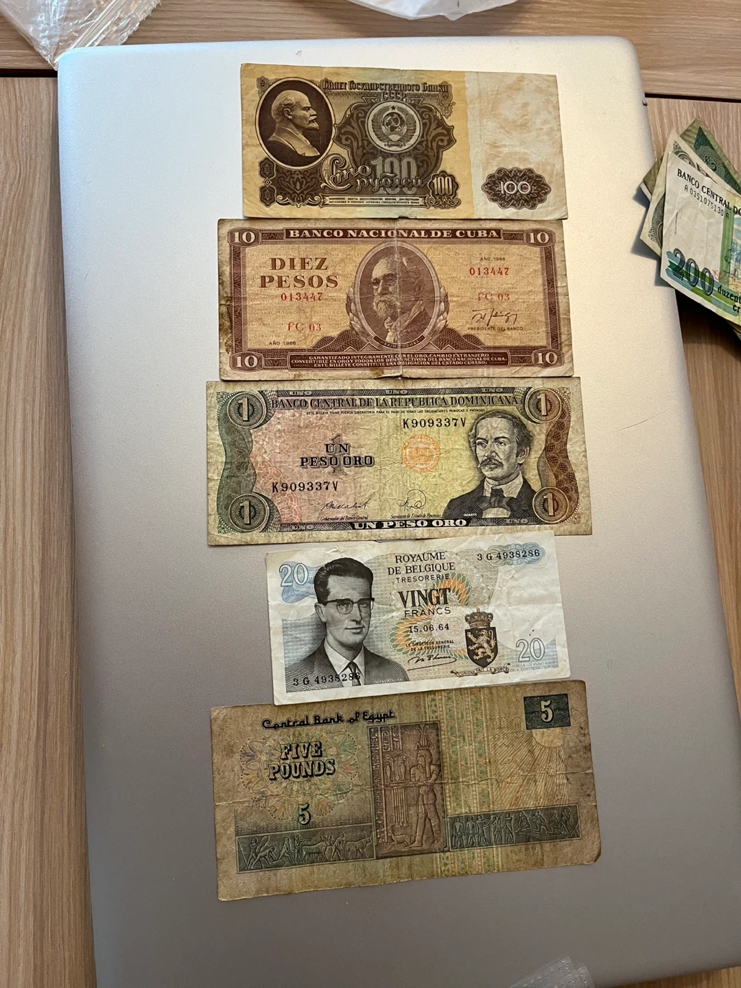 2508 dollars each best offers accepted available for six days back to hometown Here's a collection of various foreign banknotes, including currency from Cuba, the Dominican Republic, Belgium, Egypt, and the former USSR. A cool assortment for collectors or anyone interested in international currency!