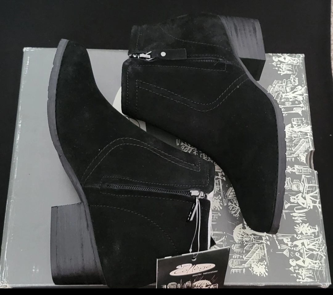 College Style Black Suede Ankle Boots