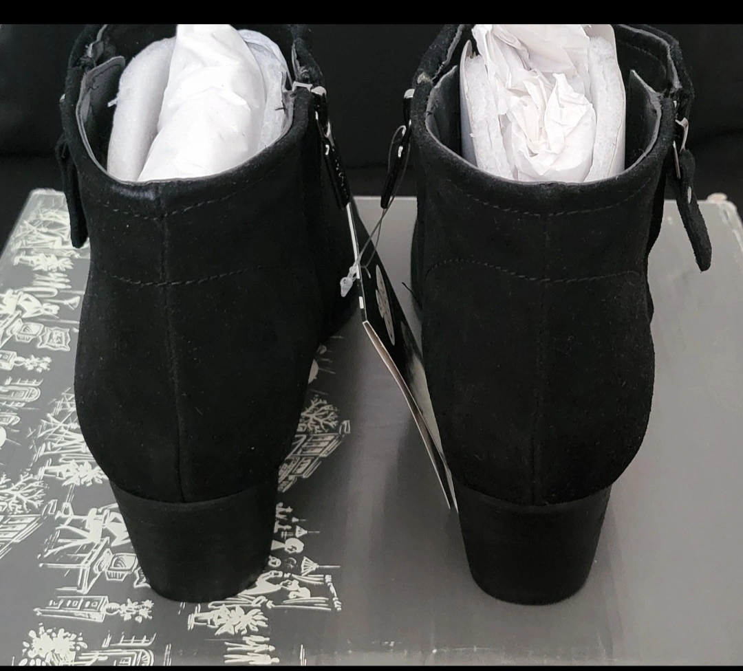 45Winter Boots/ Naturalizer Waterproof Suede Booties/ Women's Booties Colors: Black Brown Sizes: Brown: 10M and 11M Black: 6.5M, 8.5M, 9.5M, 10M, 11M Weatherproof ankle bootie with twin zippers. Waterproof and rubber outsole. Multi-layer insole with superior insulation for warmth and all-day comfort Soft suede lining, boots feature waterproof materials with sealed seams, ultra-comfortable insulated linings and rubber outsoles. Heels: 2" High