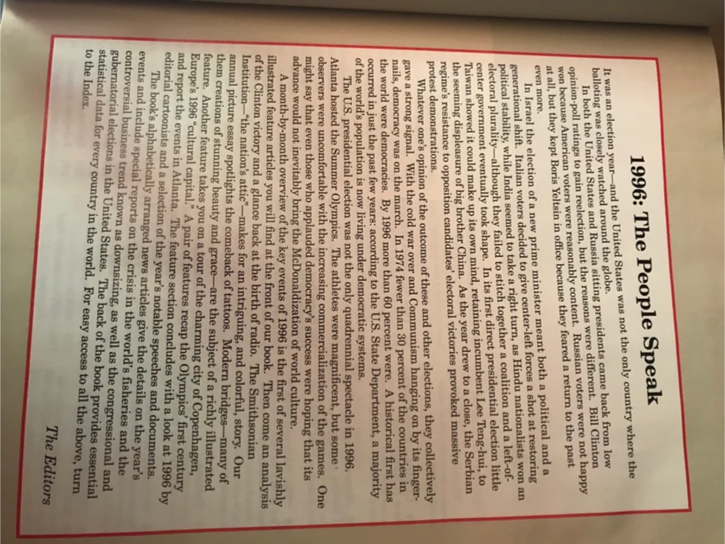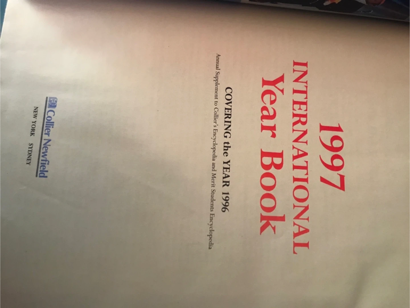 Selling Collier's International Year Book covering 1996 and 1997. These annual supplements to Collier's Encyclopedia provide a comprehensive overview of the year's events, including politics, culture, and more. A great resource for history enthusiasts!