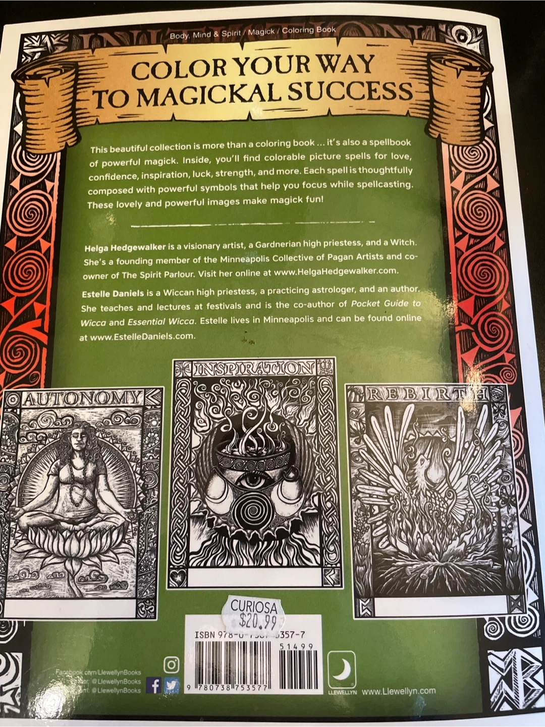 457It contains 24 of the 26 picture spells to colour and manifest. All 26 spell/ritual pages are there. This book is more than a coloring book; it's also a spellbook of powerful magick. Each spell is thoughtfully composed with powerful symbols that help you focus while spellcasting. These lovely and powerful images make magick fun! Originally $20.99