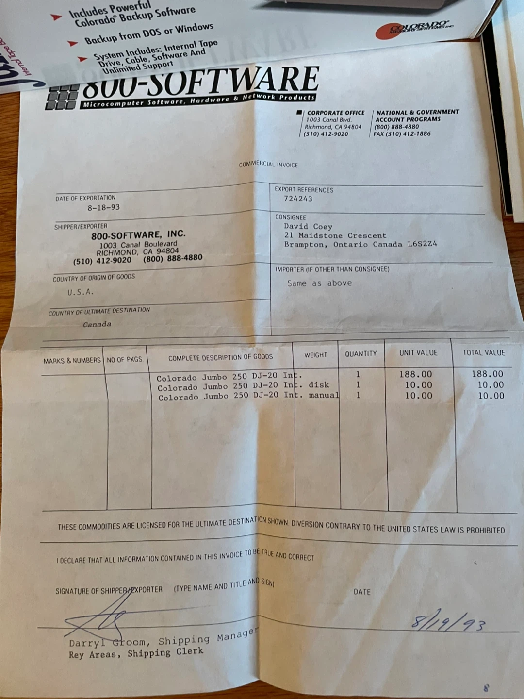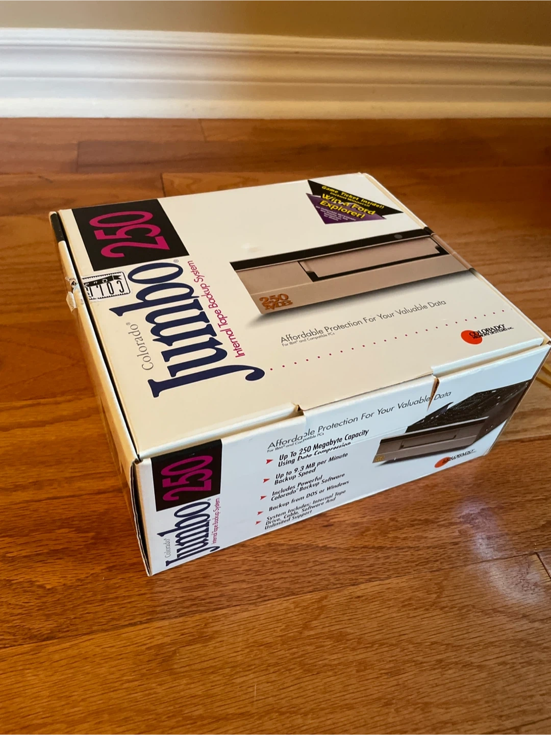 Selling a vintage Colorado Jumbo 250 Internal Tape Backup System. This system provides affordable protection for your valuable data. Key features include: - Up to 250 Megabyte Capacity - Fast data backup - Includes powerful DOS software Comes with the installation guide, all inserts and manuals, and original box. I’m the original owner, receipt included! This has been stored in a safe and dry location for a couple of decades. Can’t test it, but it’s in great condition.