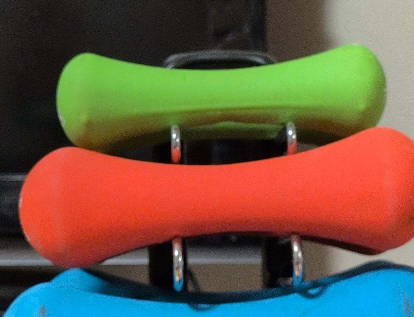 15Here are some colourful dumbbells, perfect for a home workout! They're in great shape and ready for a new owner comes in 3lbs , 5lbs and 8lbs.