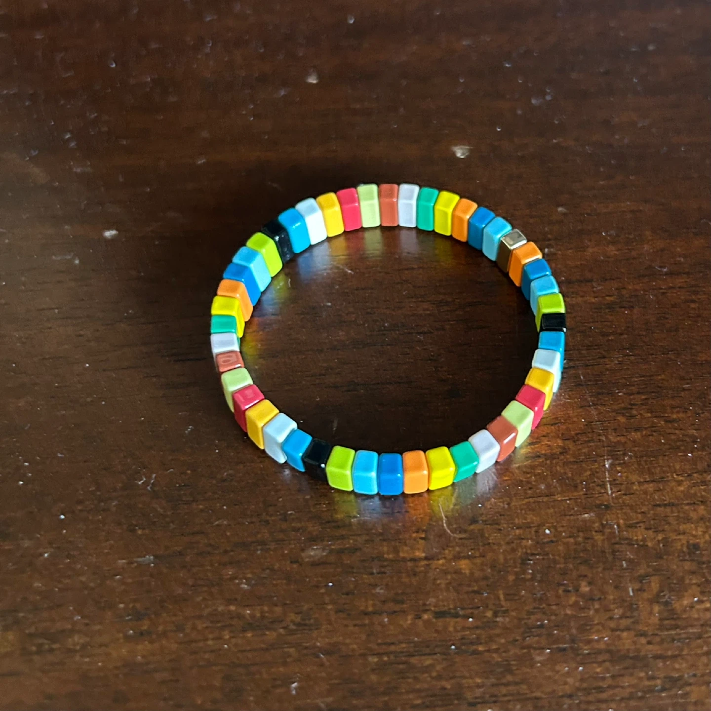 1000+Here's a fun and vibrant bracelet made with colourful tiles! It's perfect for adding a pop of colour to any outfit. The bracelet is in great condition and ready to wear.