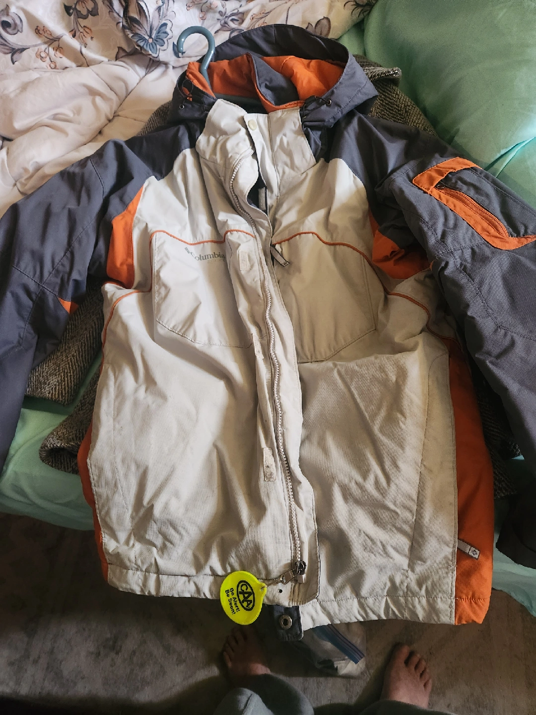 Columbia 3-in-1 jacket in great condition. It's a stylish orange and grey colour. Perfect for layering and staying warm during the colder months!