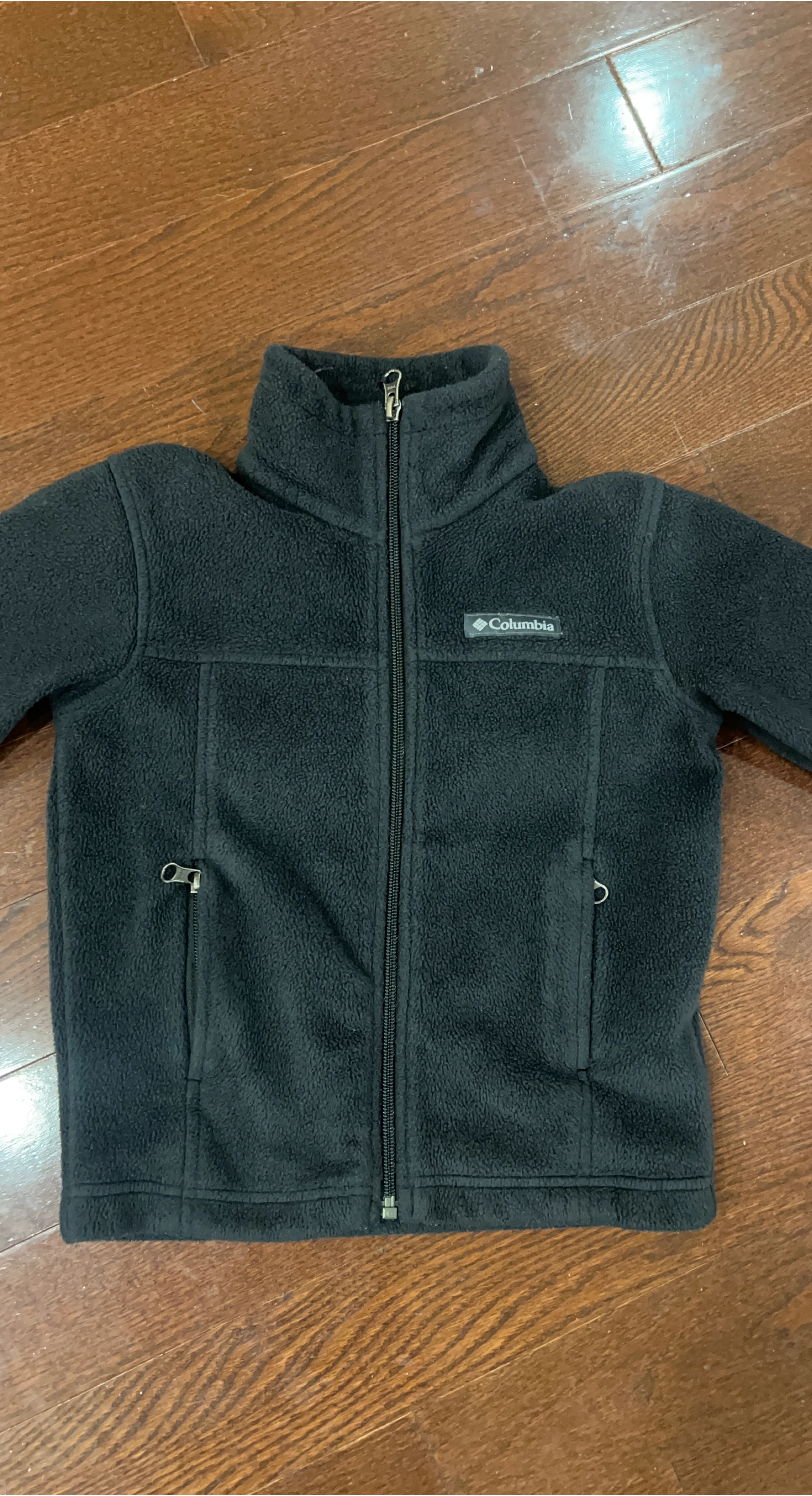 38Cozy black fleece jacket from Columbia! Perfect for layering on chilly days. It has a full zip and pockets