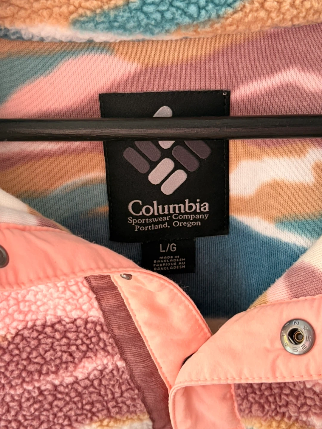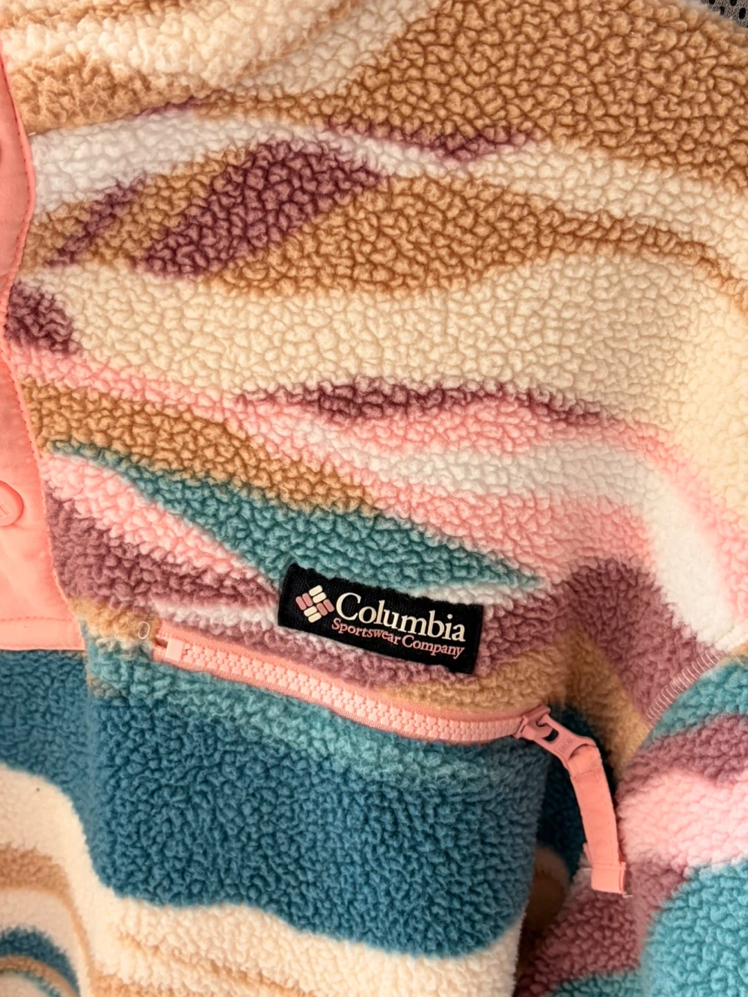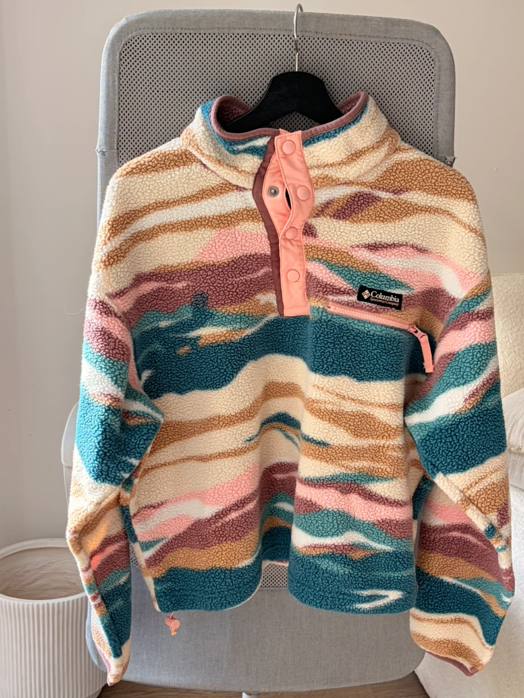 Selling a Columbia fleece pullover in a size large! Never used. It features a colorful pattern with pink button details. It's very cozy and perfect for cooler weather