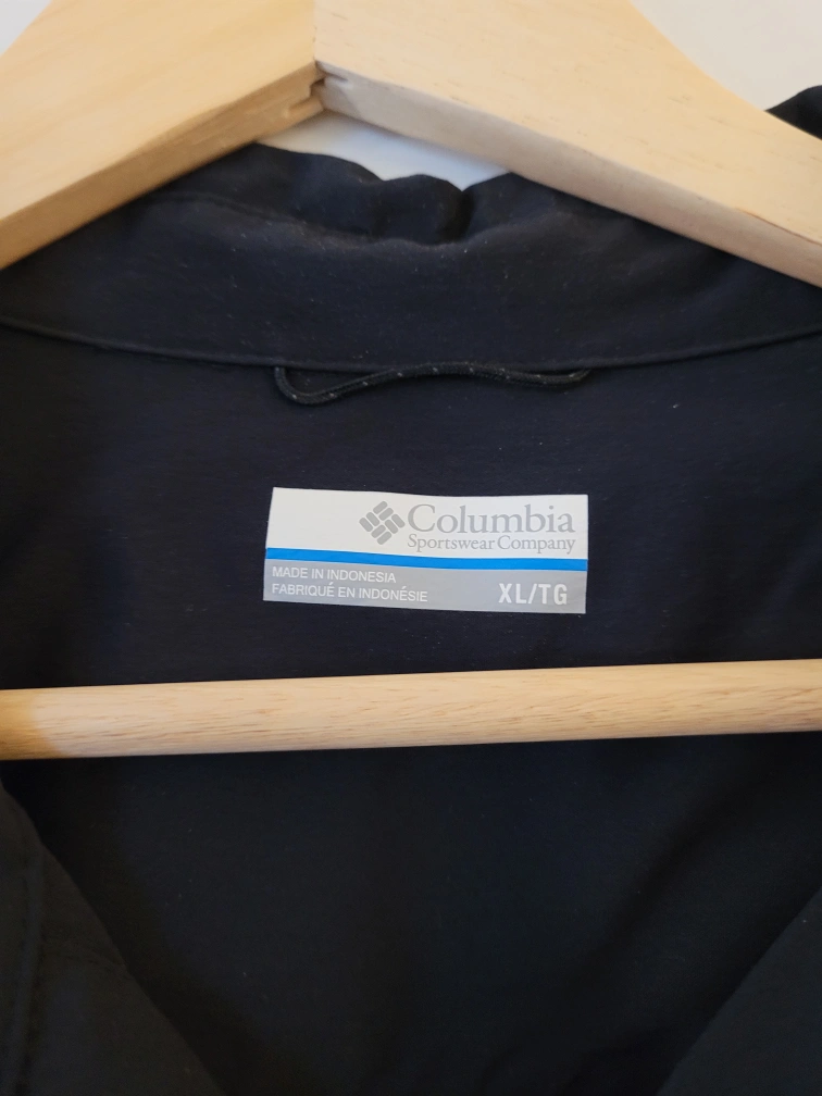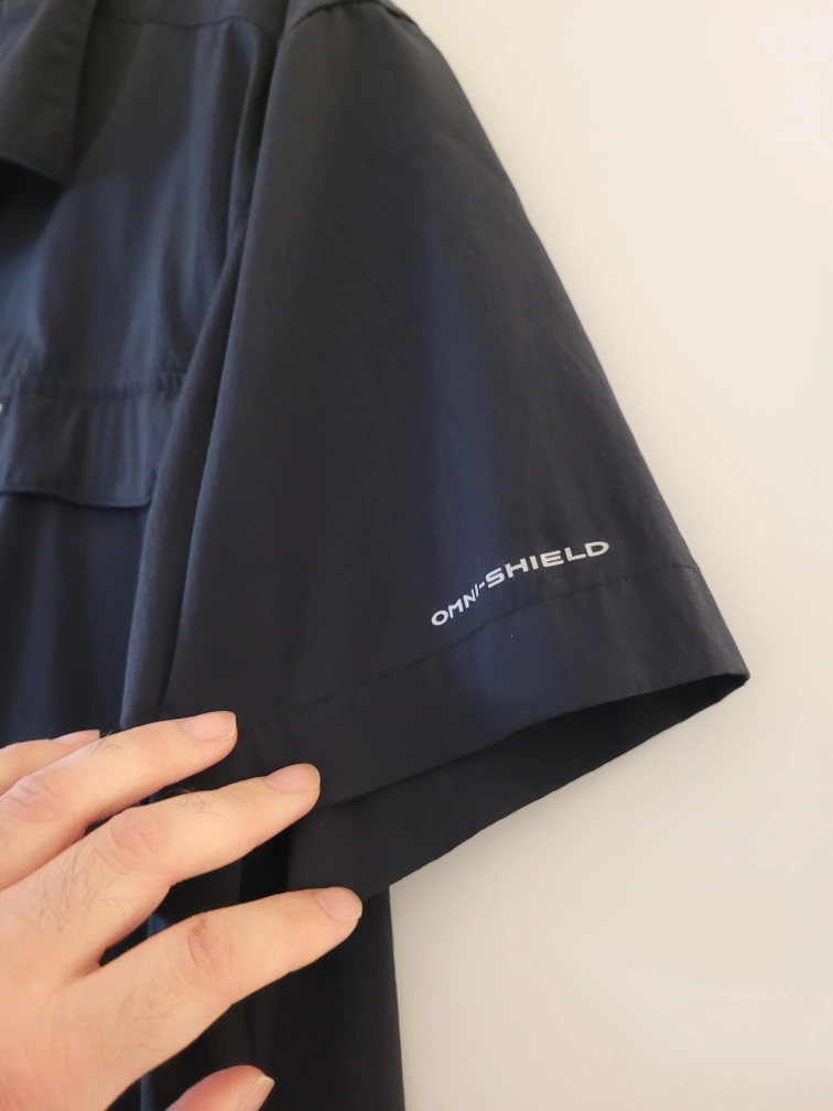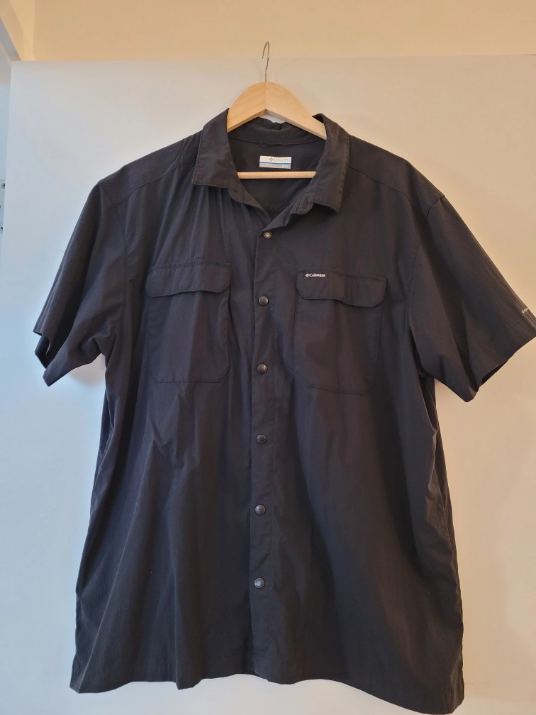 116Men's Columbia sportswear button-down shirt. Black colour. Size XL. Omni-Shield technology. Two chest pockets. Short sleeves.