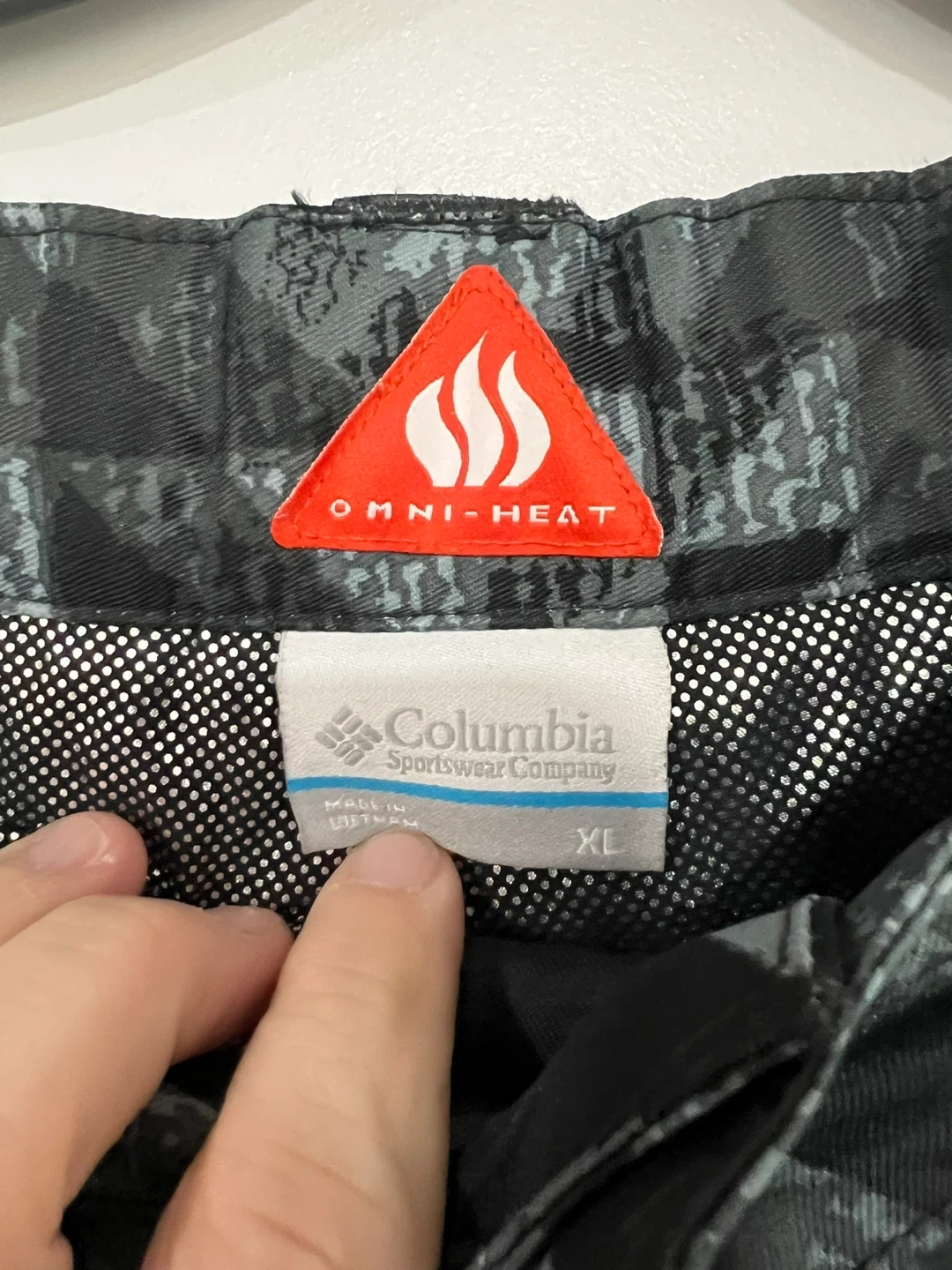 These Columbia Omni-Heat snow pants are in great condition and ready for the slopes! They are size XL and feature a stylish black and grey pattern. The Omni-Heat technology will keep you warm and comfortable all day long