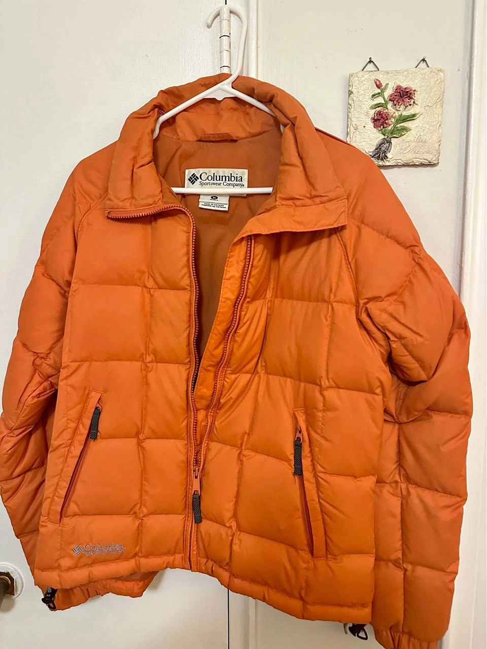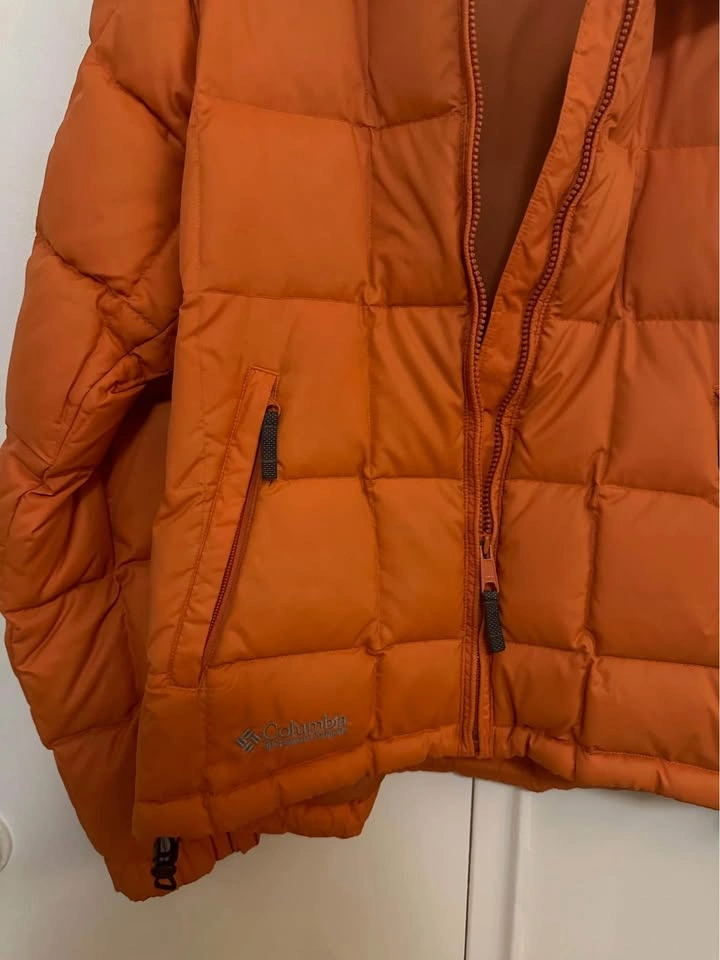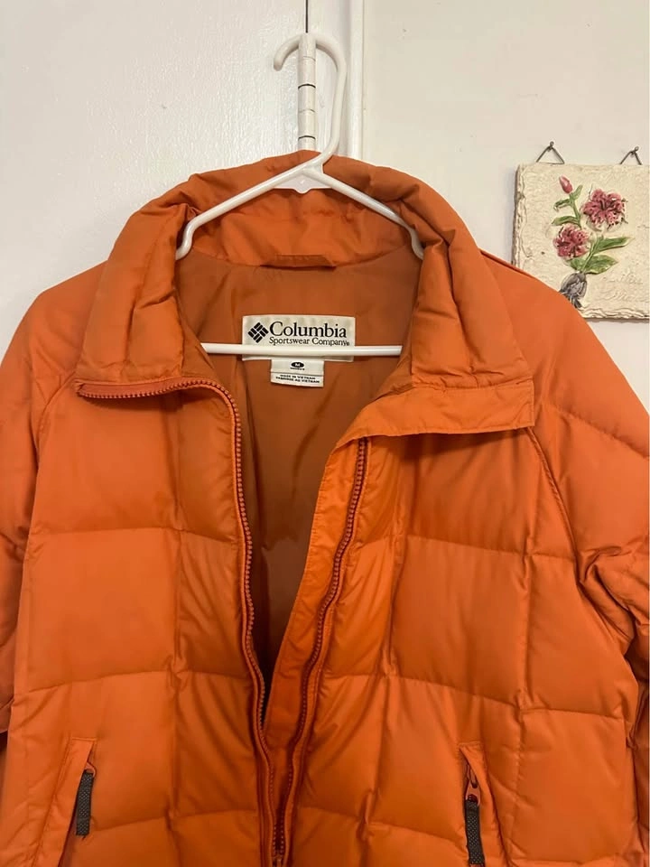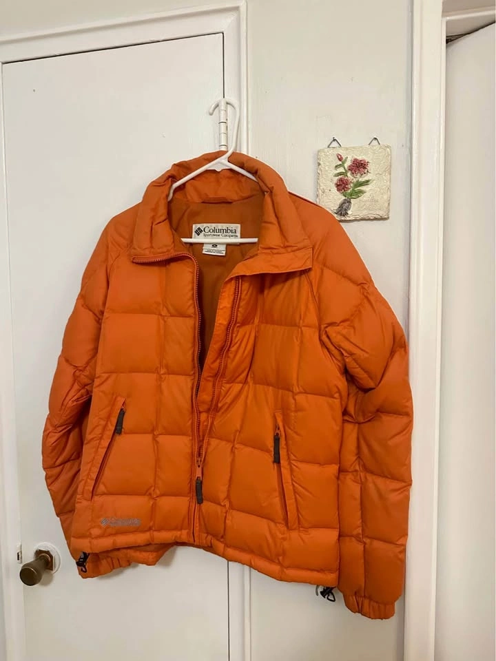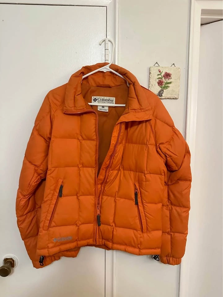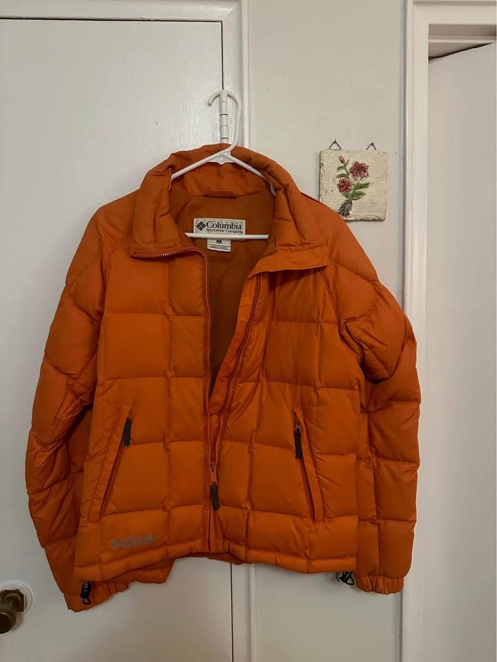19Size medium. Transitional weather like fall & early spring. Made of dawn & feathers. Two exterior pockets, and one interior (all with zippers). Adjustable width with string. SHOULDER TO HEM: 25” PIT TO PIT: 21” PIT TO HEM: 14.5” LENGTH OF SLEEVE FROM NECK: 30”