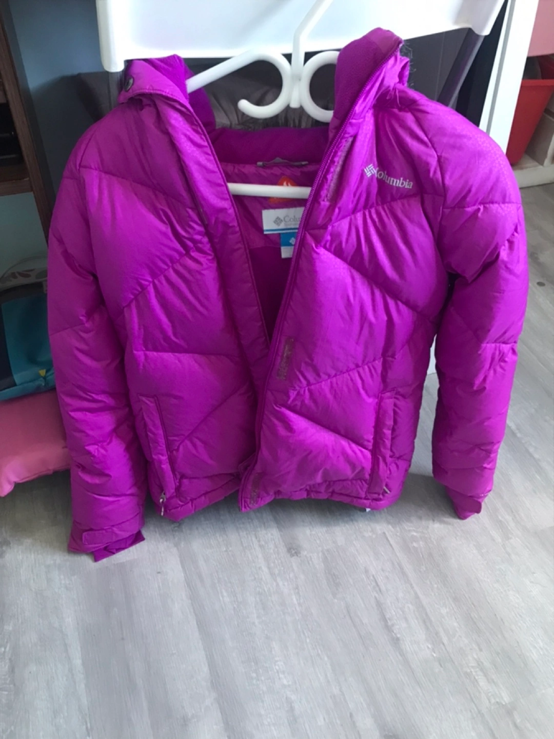 10Selling a bright purple Columbia puffer jacket! It's in great condition and ready to keep you warm this winter. The jacket features a quilted design and the Columbia logo on the chest. Offers are aloud