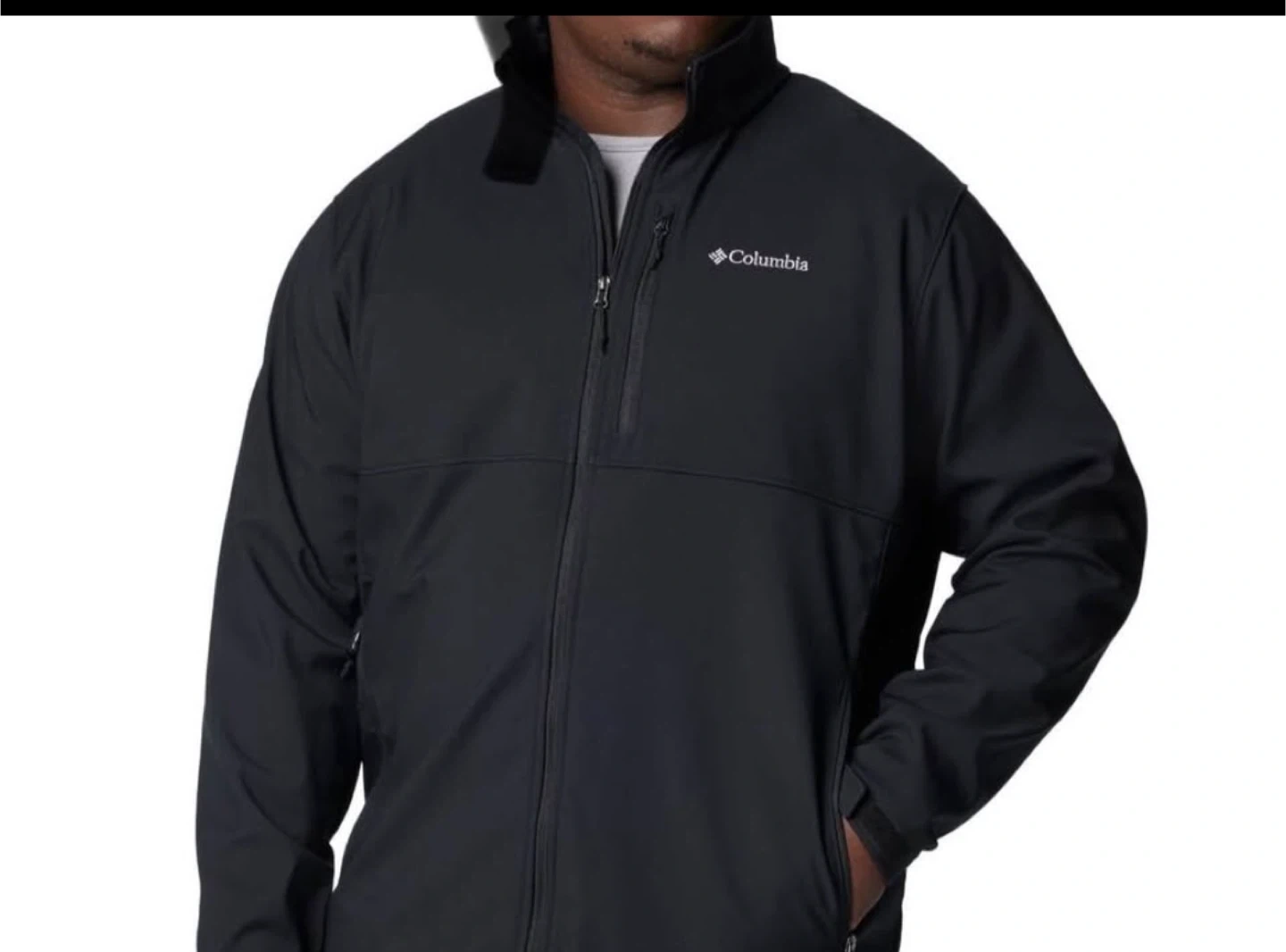 18Selling a Columbia softshell jacket in black. It's in great condition and perfect for layering during the cooler months. The jacket features a full zip front and a zippered chest pocket. A great addition to any wardrobe! Size 4XT and size 3XT available