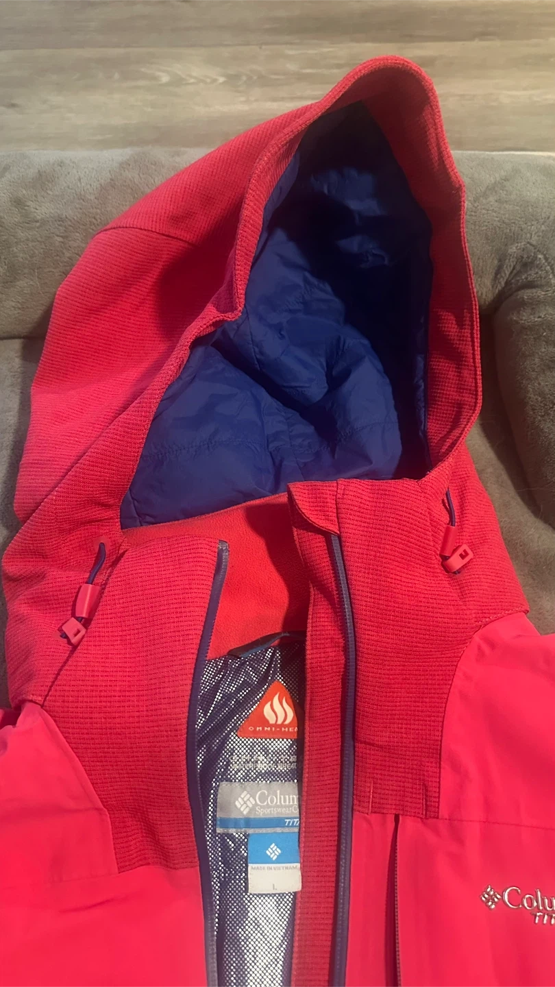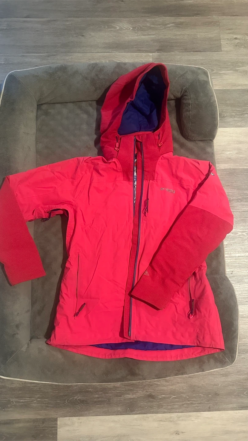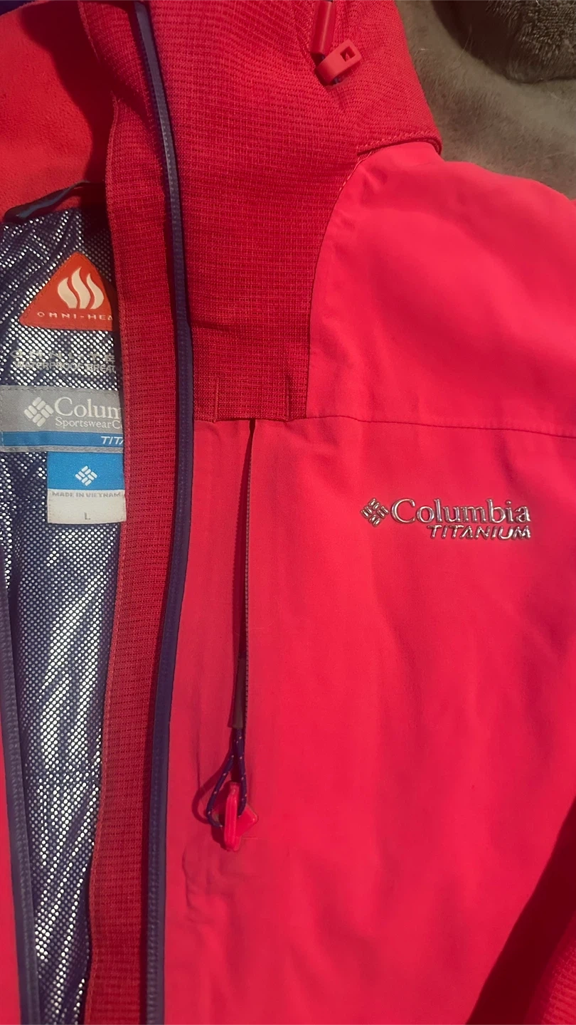 Columbia Titanium winter jacket in a vibrant pink colour! It's in great condition and ready to keep you warm this winter. The jacket features Columbia's Omni-Heat technology to help regulate your temperature. Perfect for those chilly Canadian days and for skiing or snowboarding. I bought it on sale for $500, original price was around $800.