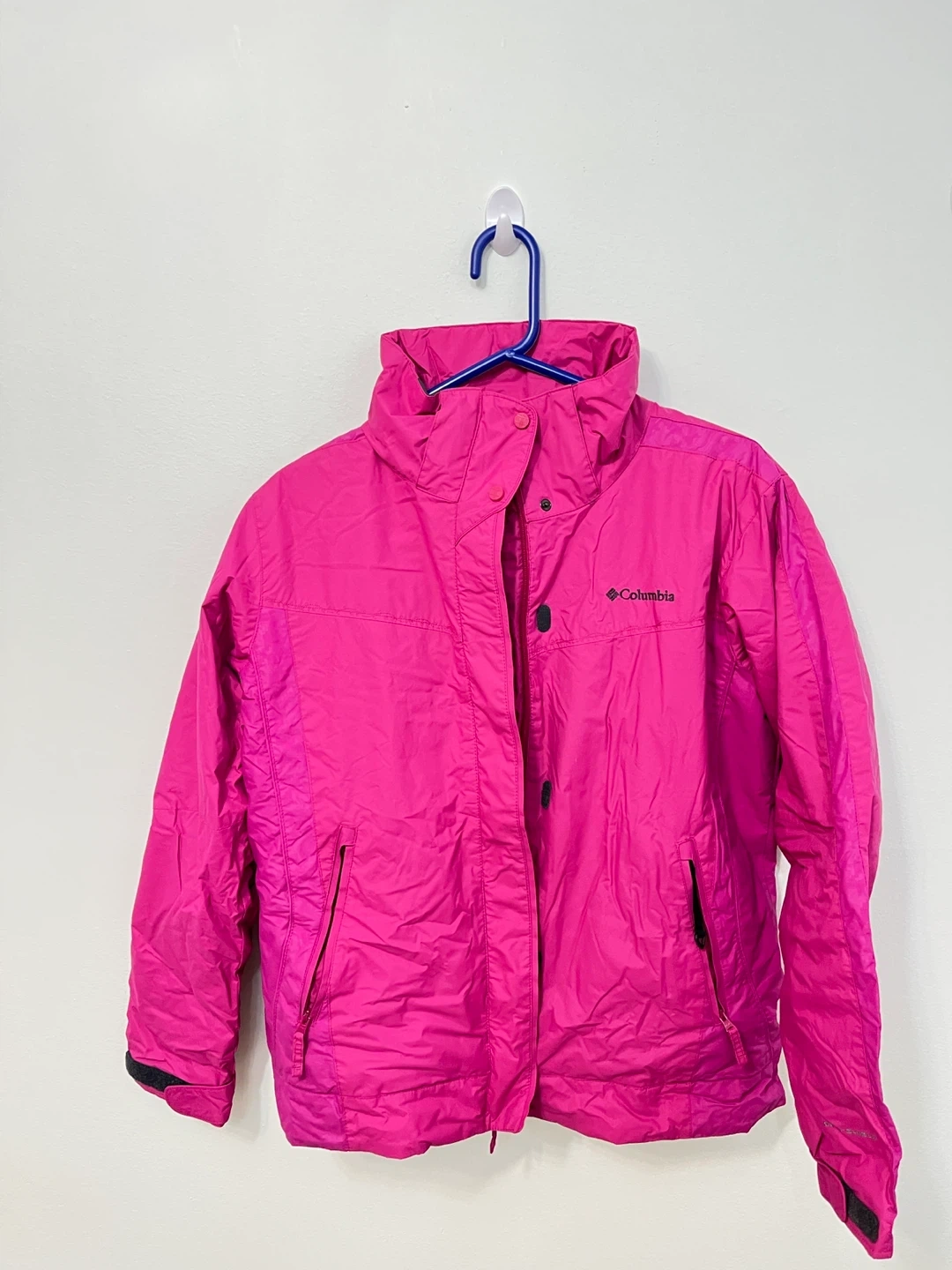 152Selling a Columbia women's jacket in size L. It's a vibrant pink colour and perfect for layering or wearing on its own during skiing weather. Waterproof. Made in Vietnam.