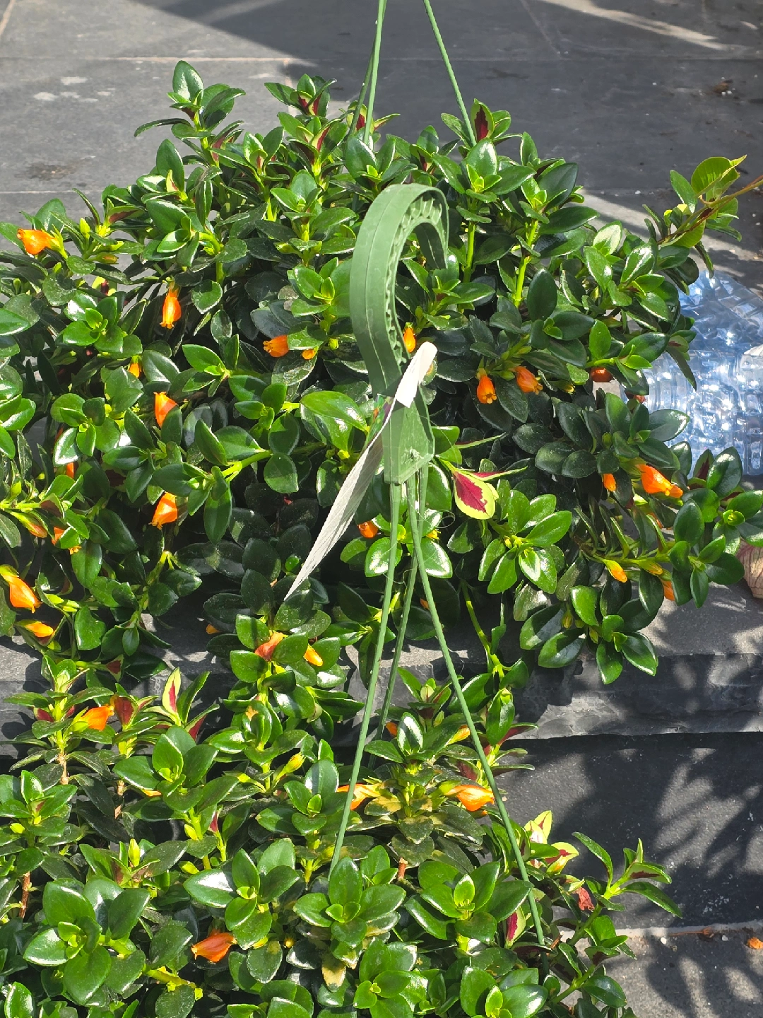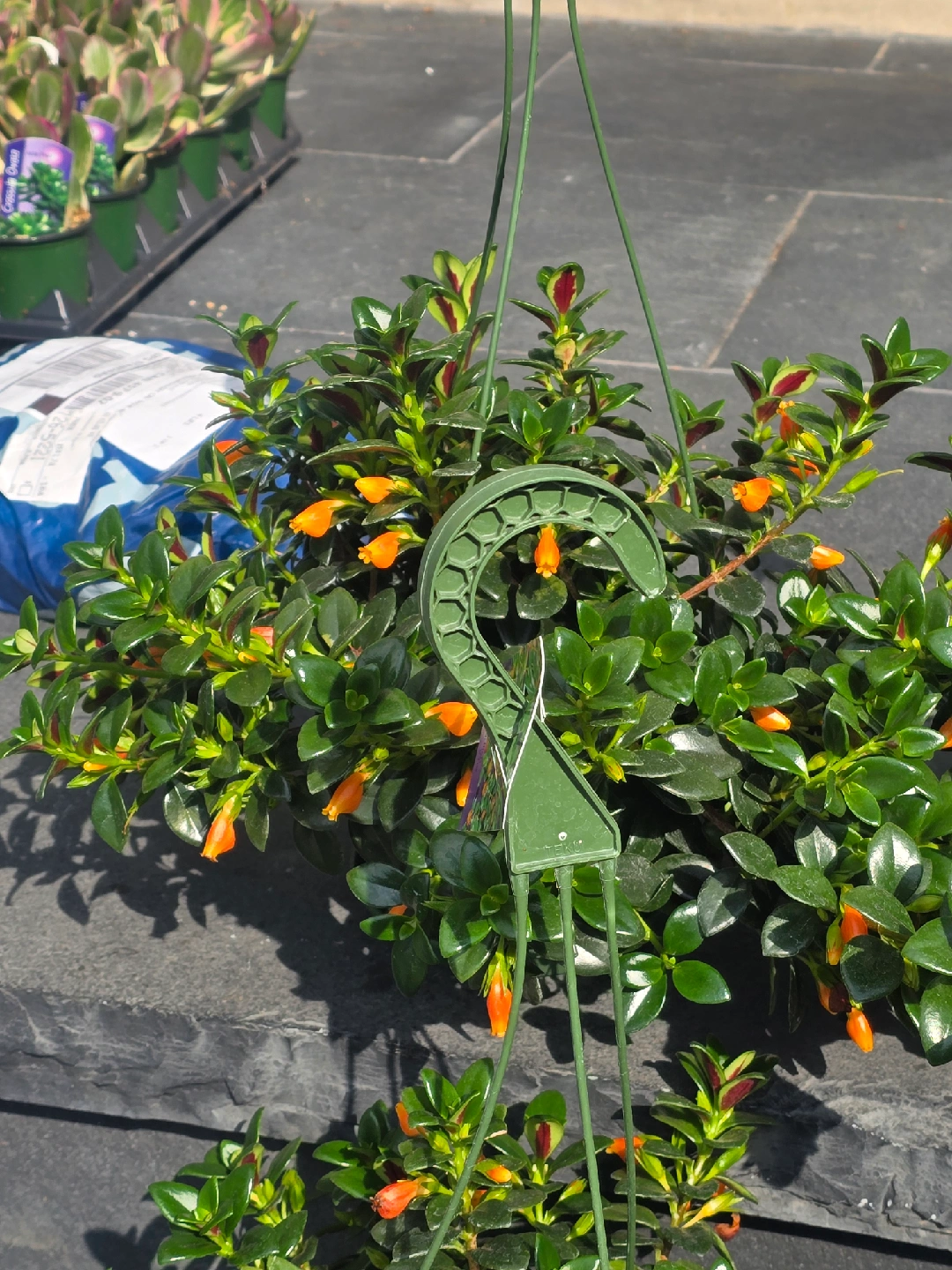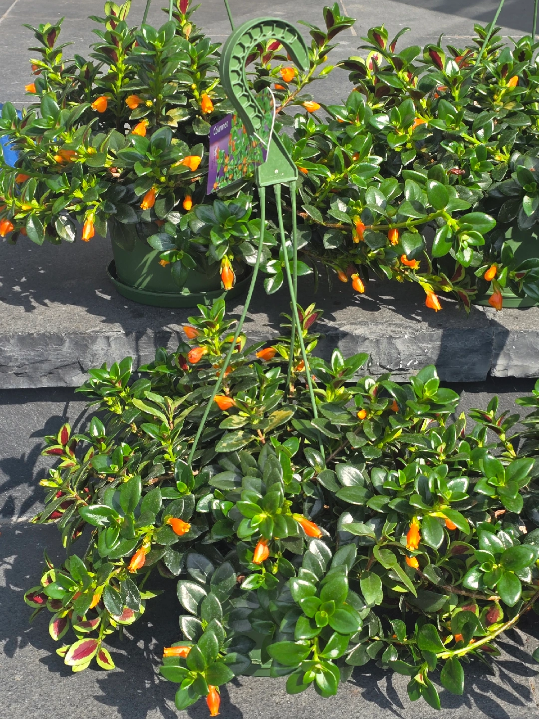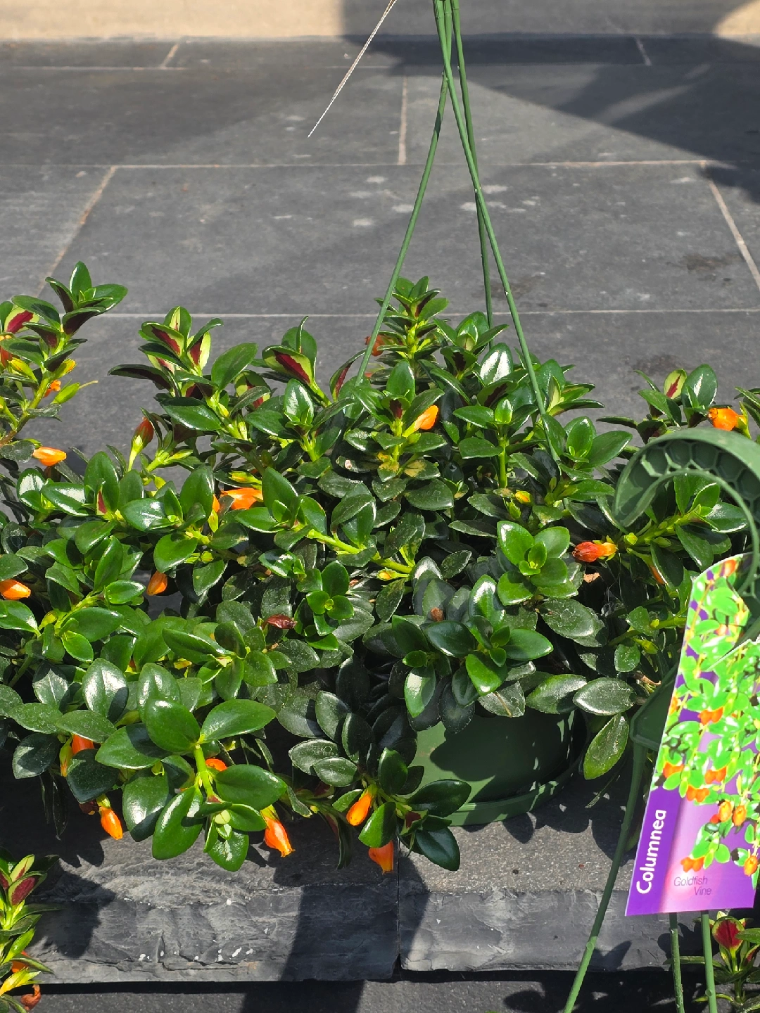 Brighten up your space with this lovely Columnea Goldfish Vine! It comes in a hanging basket, ready to display. The vibrant green foliage and unique orange flowers add a touch of nature to any room or patio