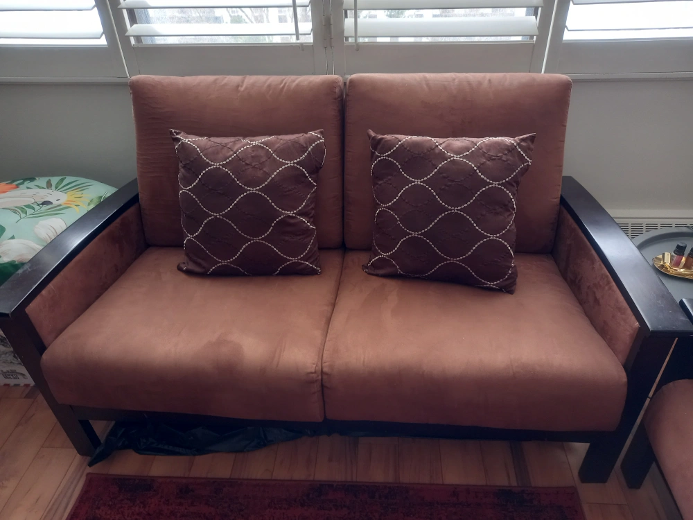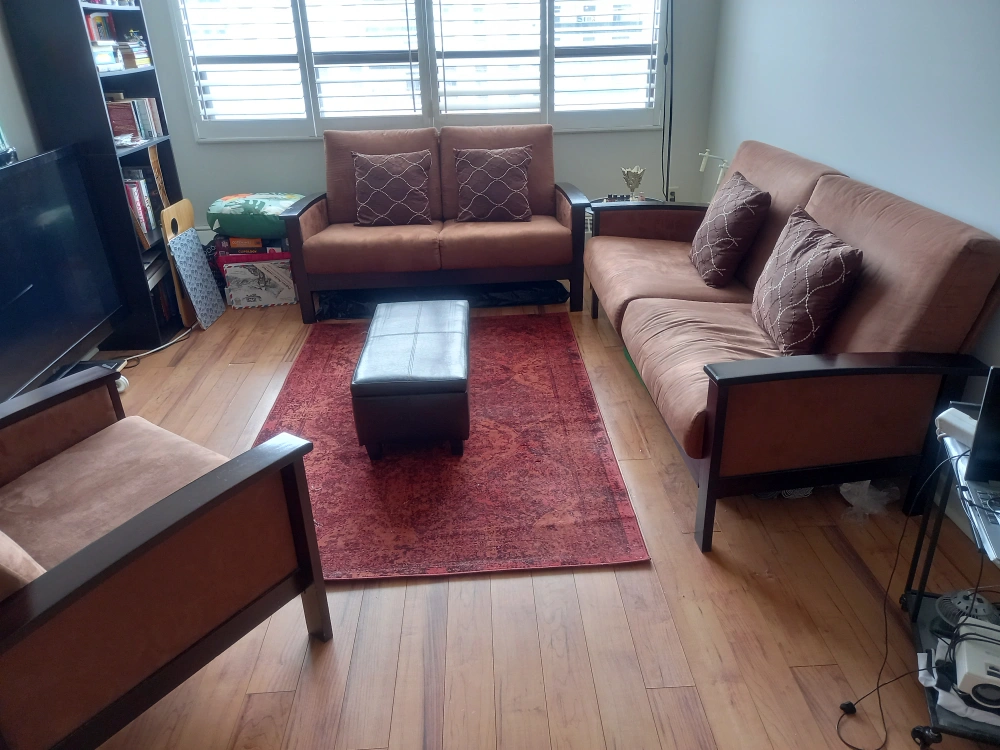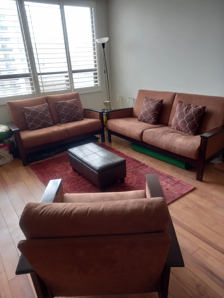 11Buy Living Room Sofa and Dining Set togheter Marble Dining Table with solid wood legs for 4 people with 4 Chairs Solid Wood 3 Piece Livingroom Sofa Set 1 seater W=81.5cm, 2 seater W=150.5cm 3 seater W=191.5cm Color Rust Microfiber Pick-Up: You will need a Uhaul type car to transport the furniture and I will need to book service elevator for this.