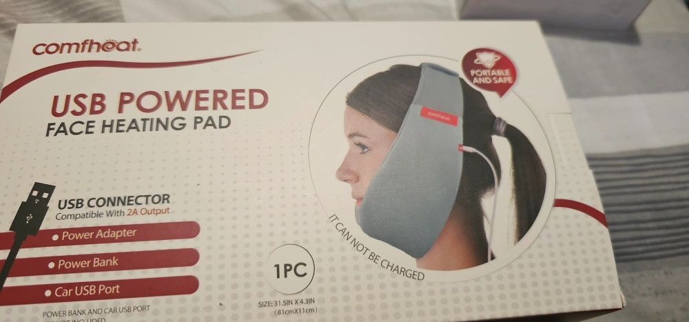 I'm selling a brand new Comfheat USB powered face heating pad! It's USB powered, so it can be used with a power adapter, power bank, or car USB port. It's portable and safe. The size is 31.5in x 4.3in (81cm x 11cm).