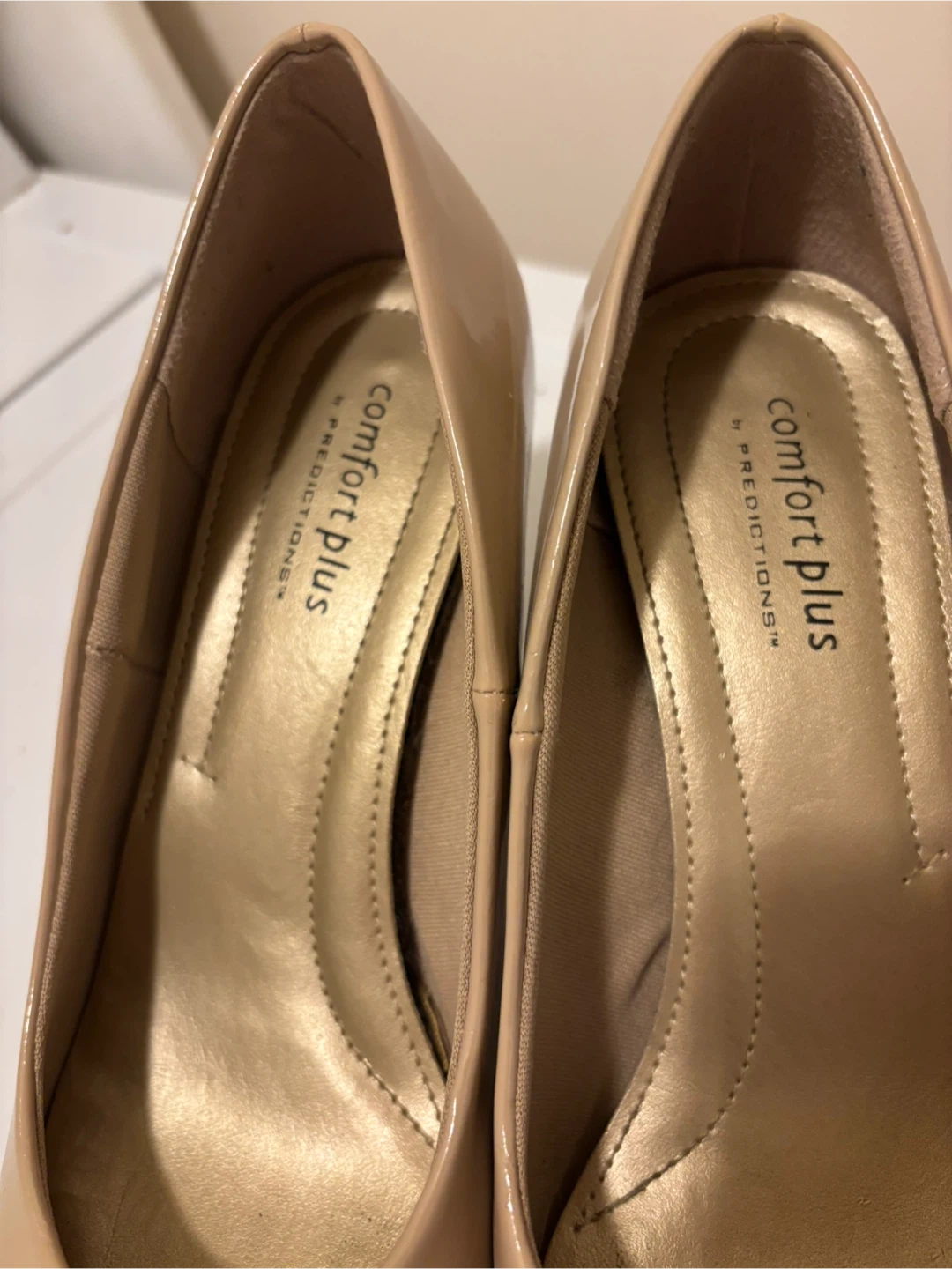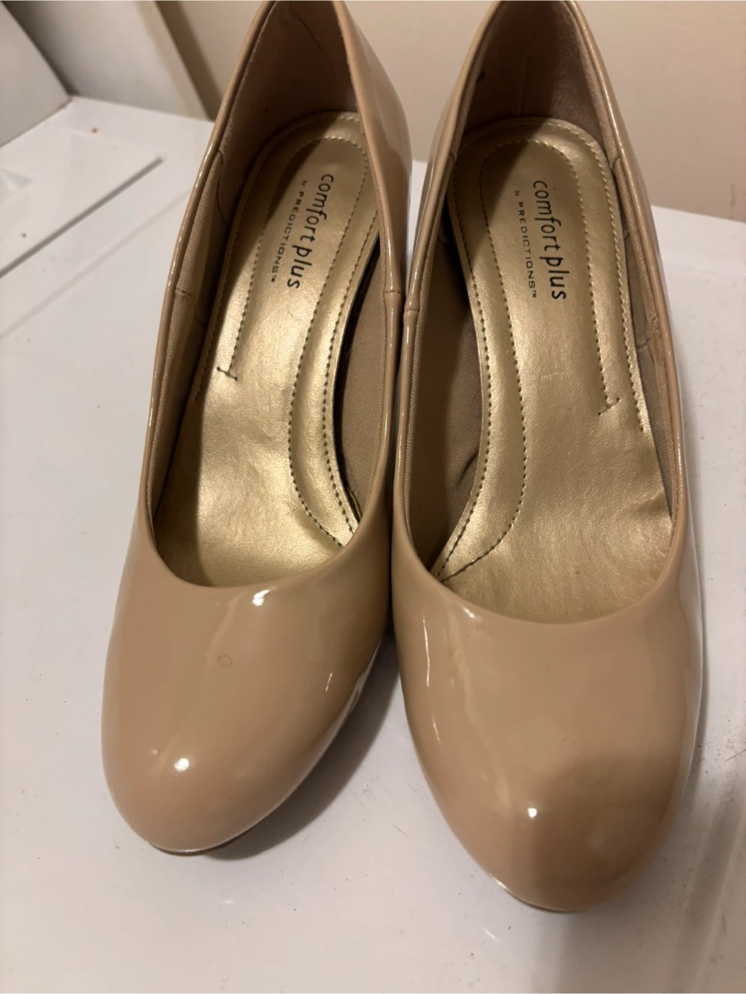 I'm selling a pair of Comfort Plus Predictions heels. They're a lovely beige colour and are a size 8.5. Perfect for dressing up or down!